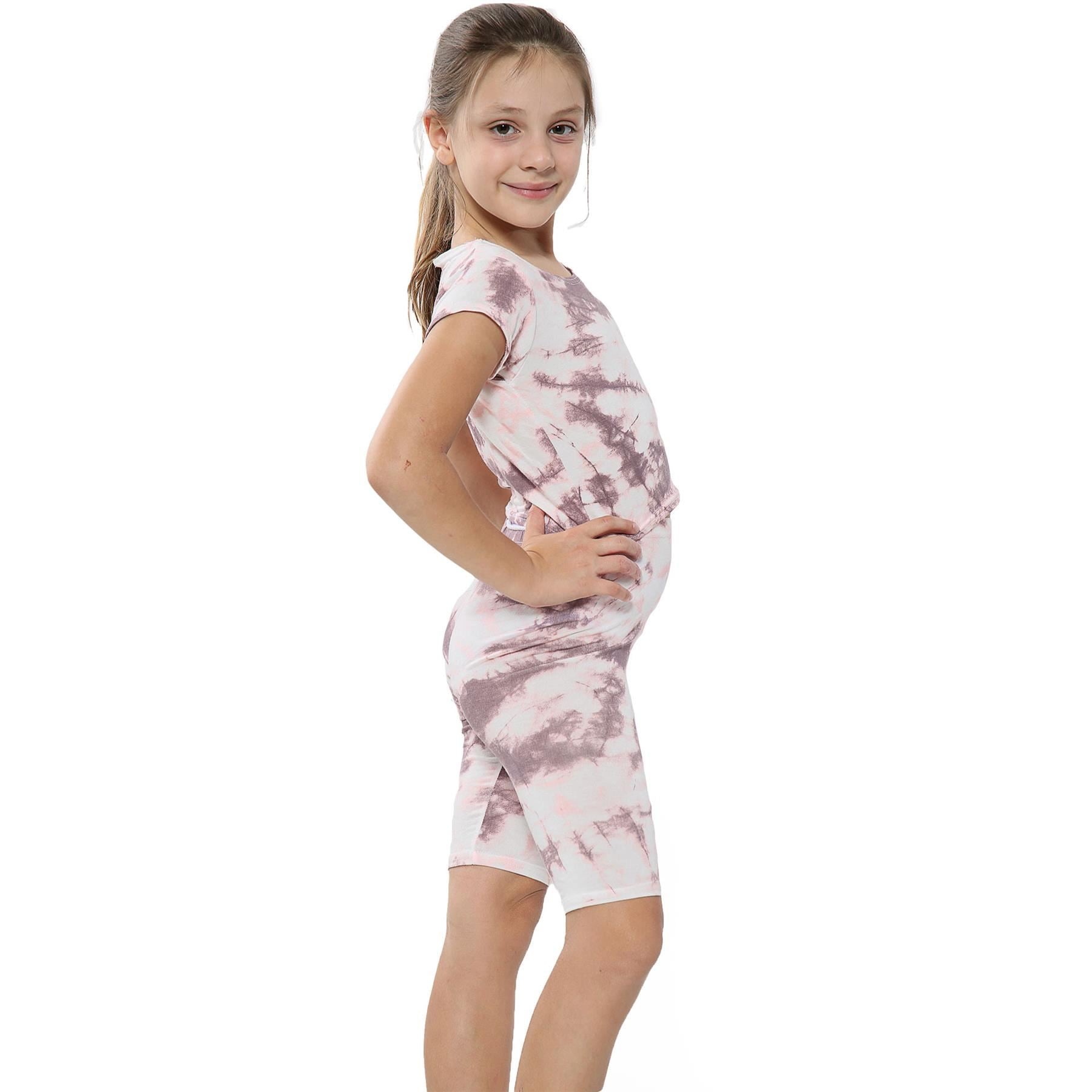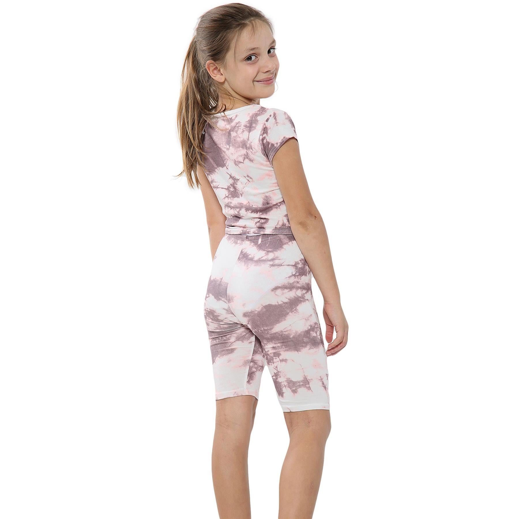 A2Z 4 Kids Tie Dye Stone Crop Top & Cycling Shorts Set Short Sleeves T Shirt Summer Outfit 2 Piece Activewear Girls Boys Age 5-13 years