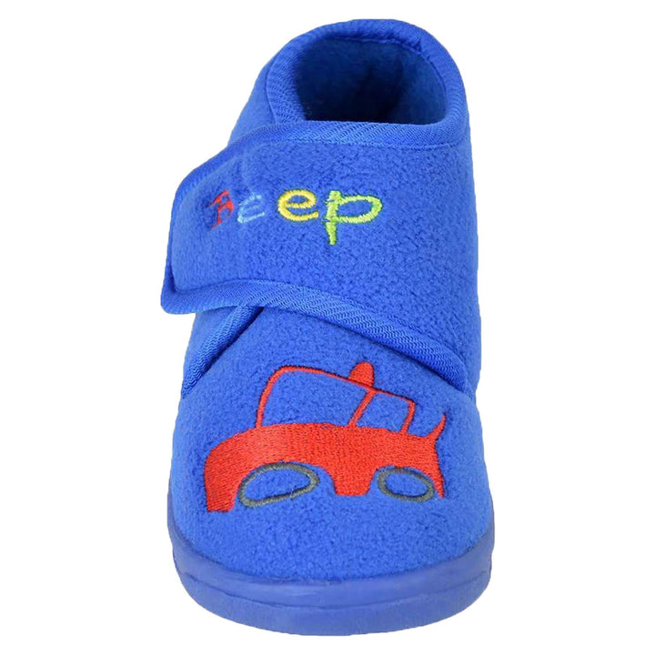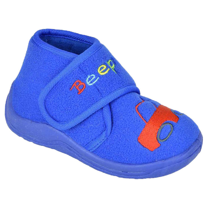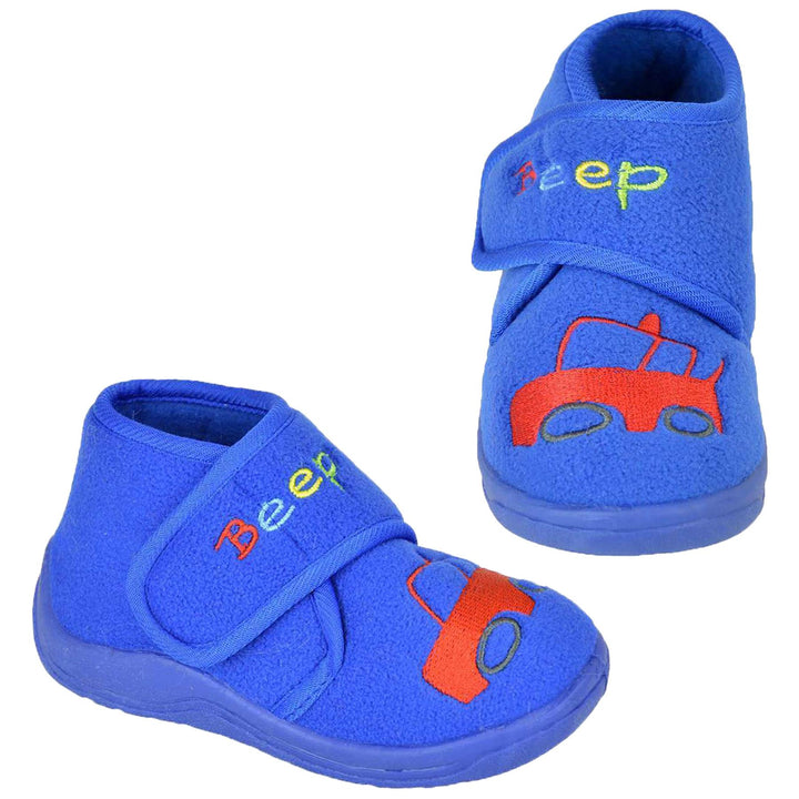 These cute warm fleece slippers are Available in Triceratops and Beep Car Colours. Available in UK children's shoe sizes 4, 5, 6, 7, 8, 9, 10.