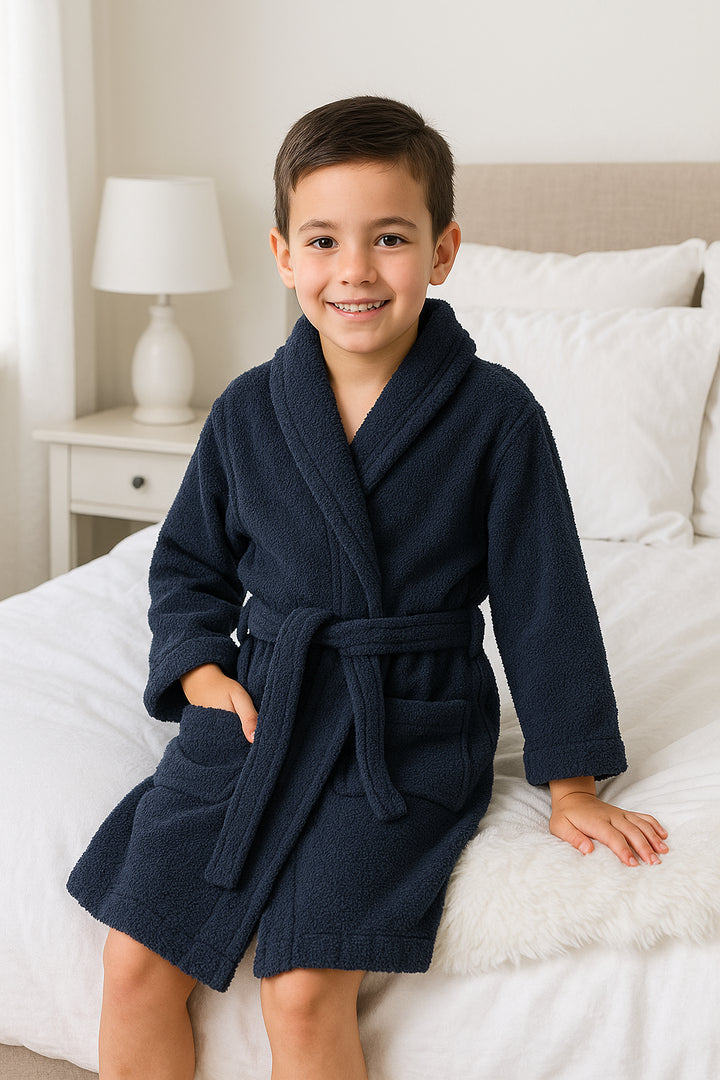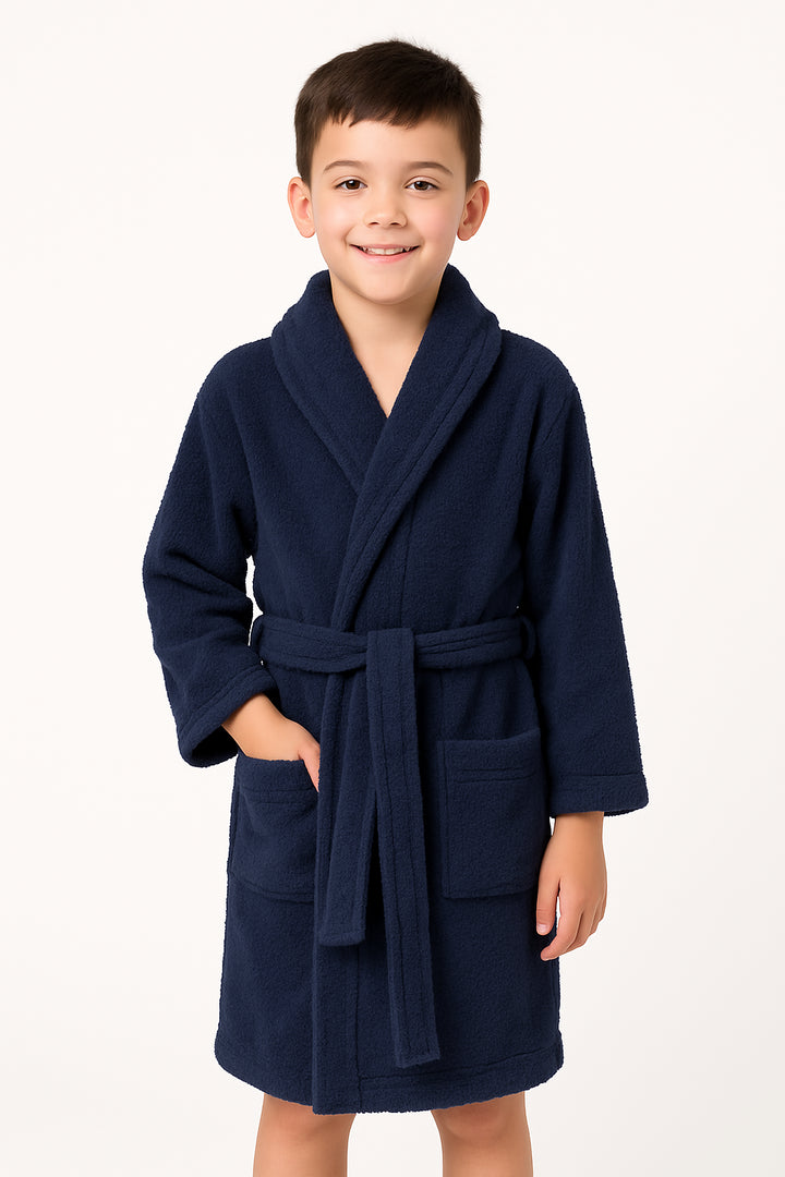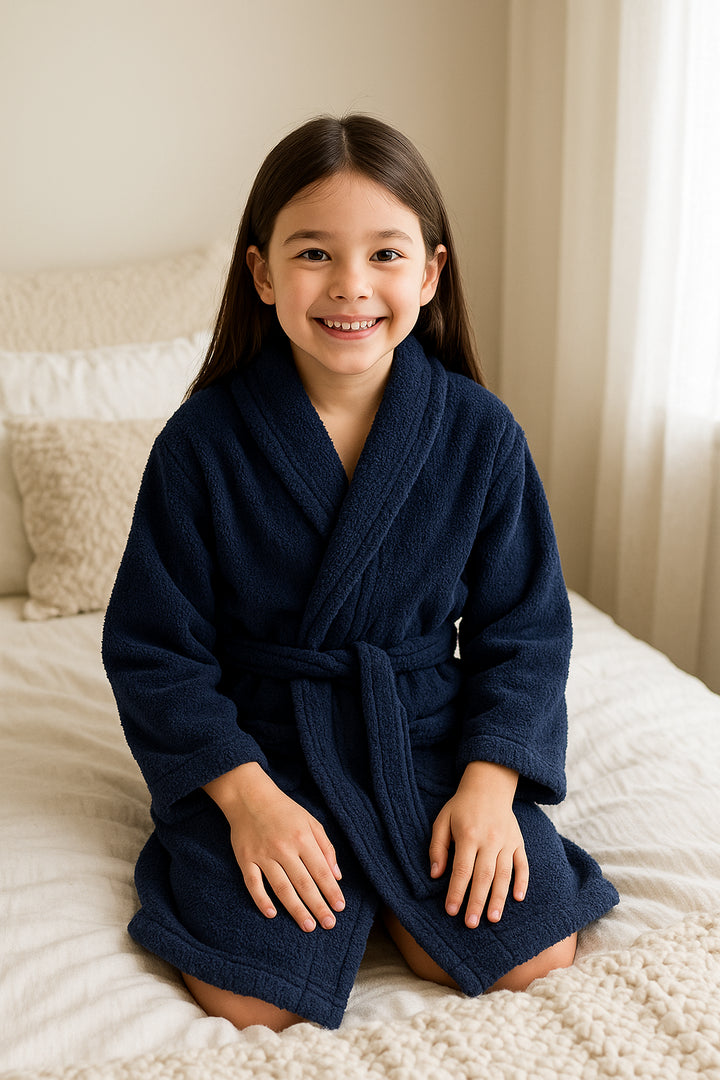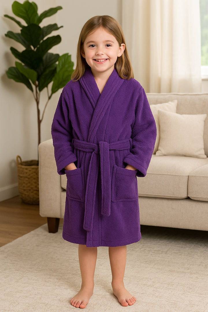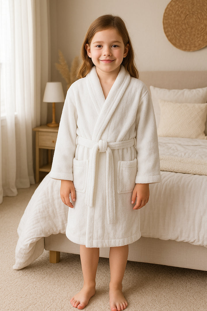 This bathrobe is designed with your Kid's needs in mind. It has two pockets on the front, providing a convenient space for small essentials or simply keeping your kid's hands warm and ensuring a snug and secure feel. Practicality meets luxury in every detail, enhancing your overall comfort. -