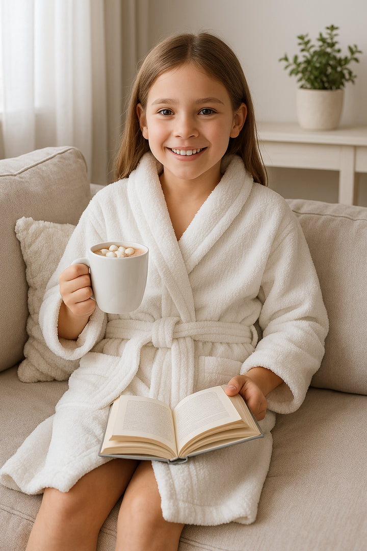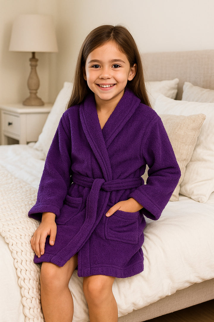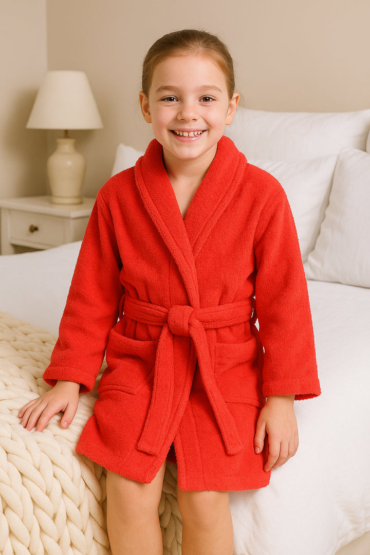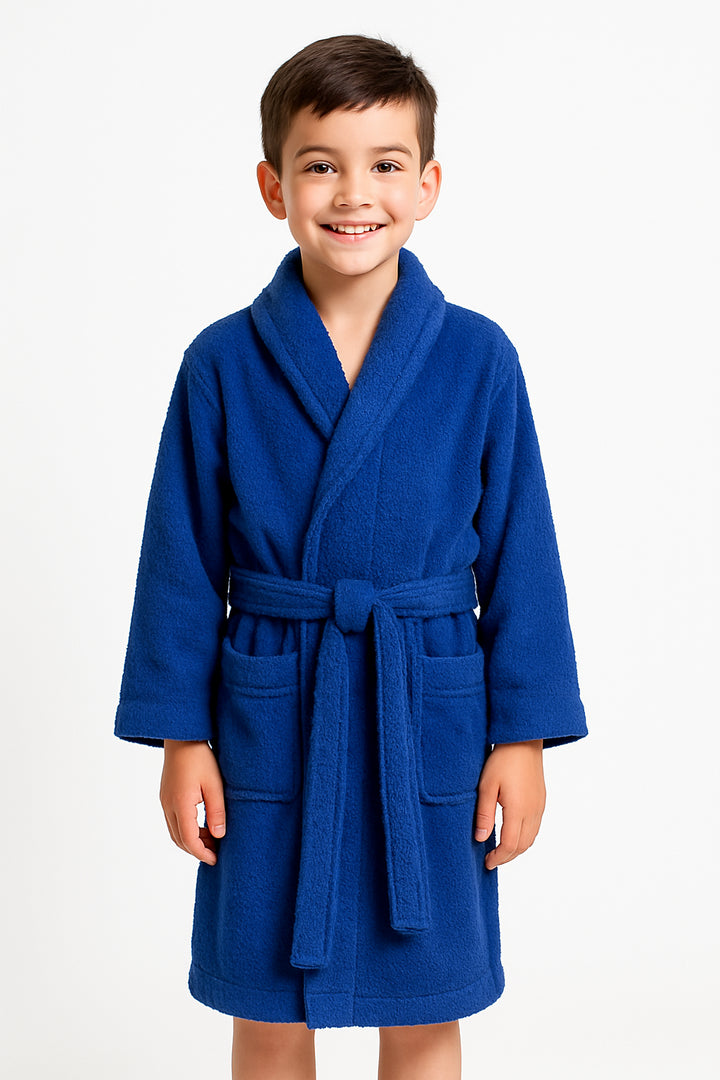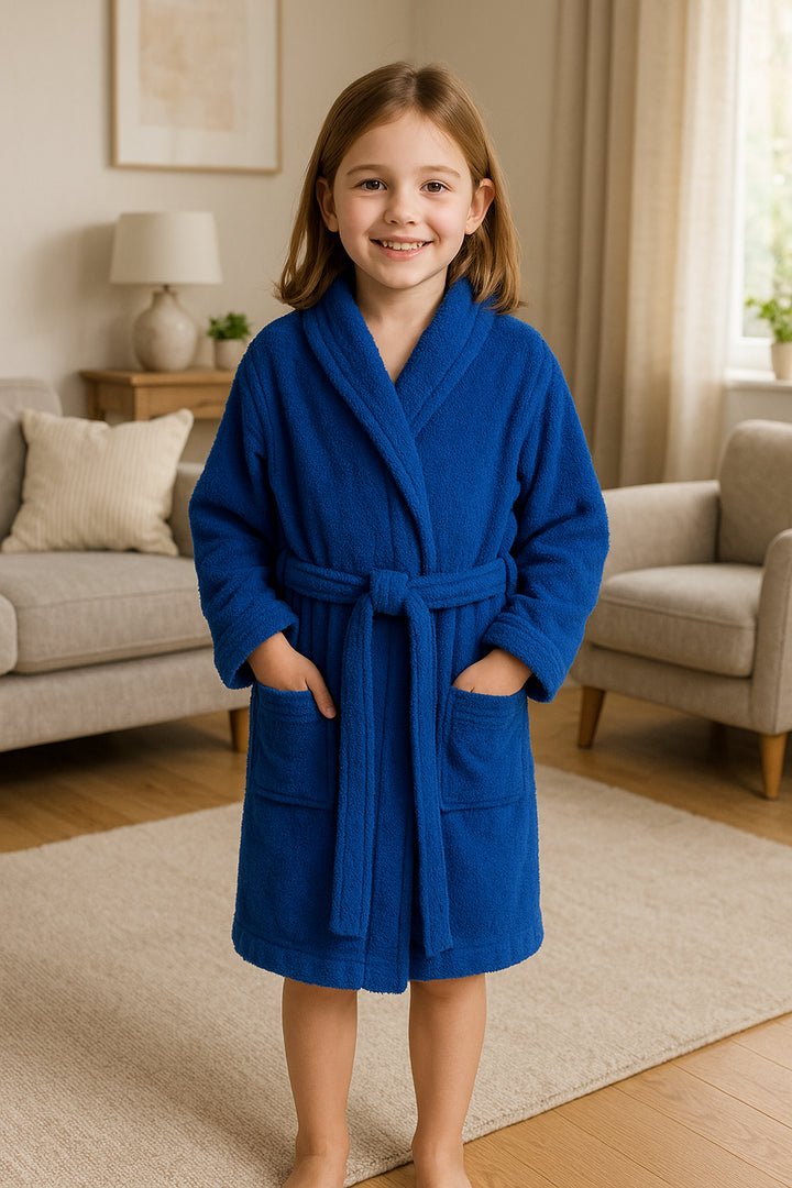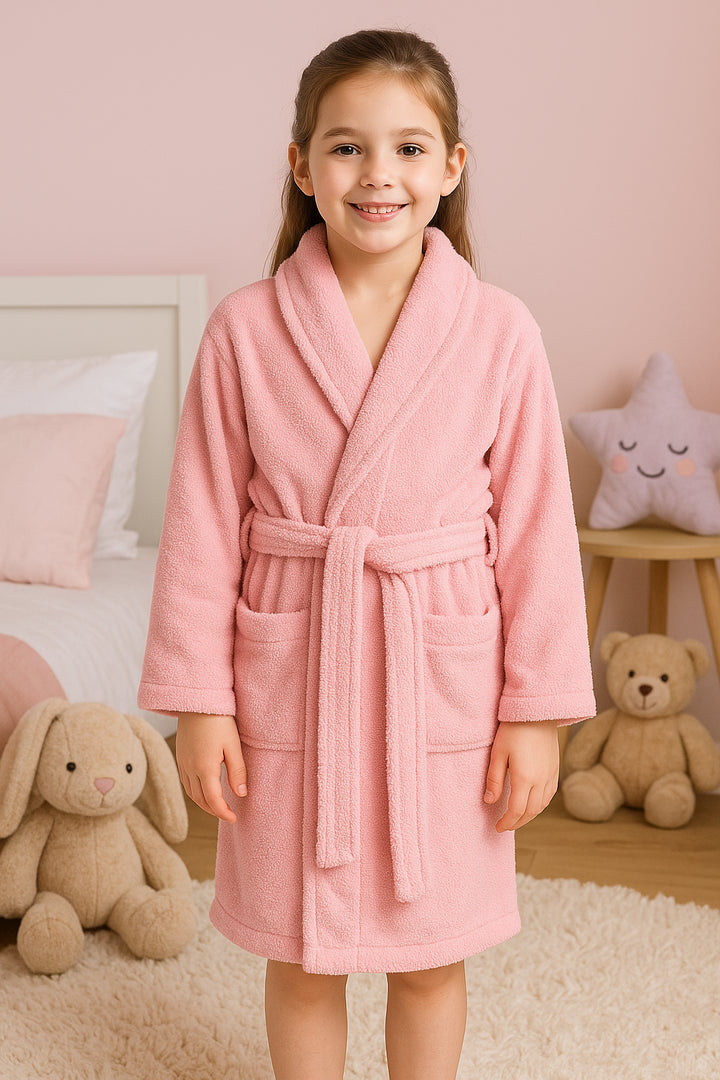 This bathrobe is designed with your Kid's needs in mind. It has two pockets on the front, providing a convenient space for small essentials or simply keeping your kid's hands warm and ensuring a snug and secure feel. Practicality meets luxury in every detail, enhancing your overall comfort. -