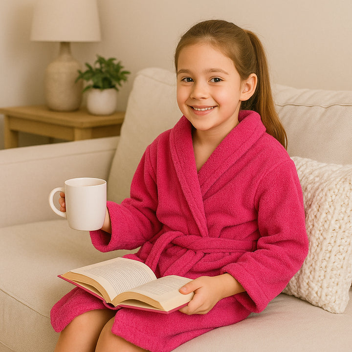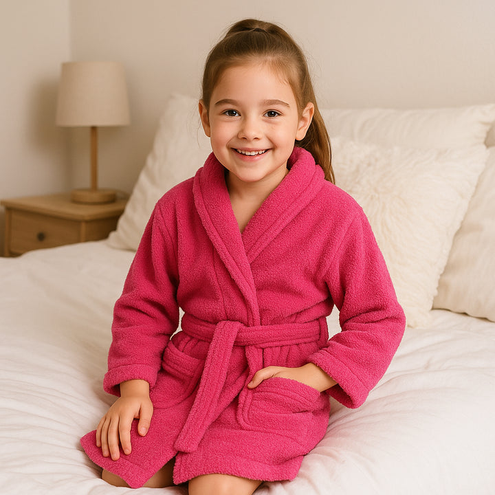 Transform your kid's daily routine into a spa-like retreat with our kid's Bath Towel Robe Hooded Dressing Gown. Immerse yourself in the sumptuous feel of 100% Cotton, available in a delightful range of colours. Choose your preferred shade and revel in the sensation of pure luxury. This bathrobe is tailored to complement every body shape, ensuring that relaxation knows no bounds.