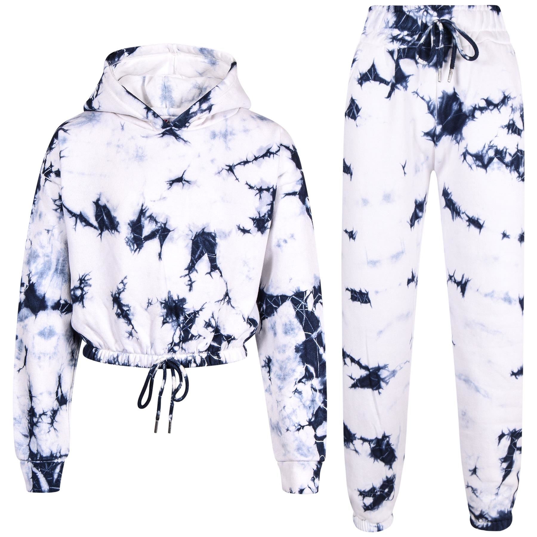 A2Z 4 Kids Tracksuit Tie Dye Printed Cropped Hoodie with Navy Jogger Sweatpants Gym Sports Activewear Cord Outfit Set Girls Children Age 5-6, 7-8, 9-10, 11-12 & 13 years