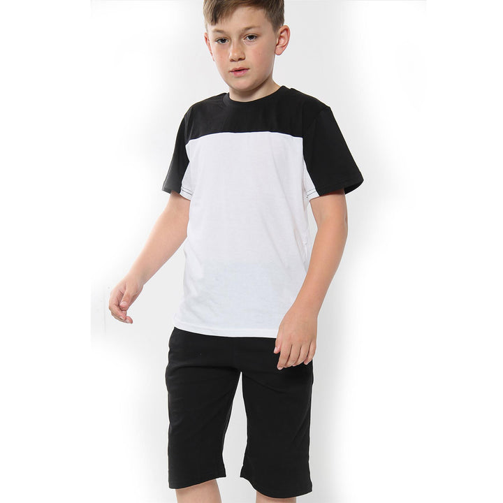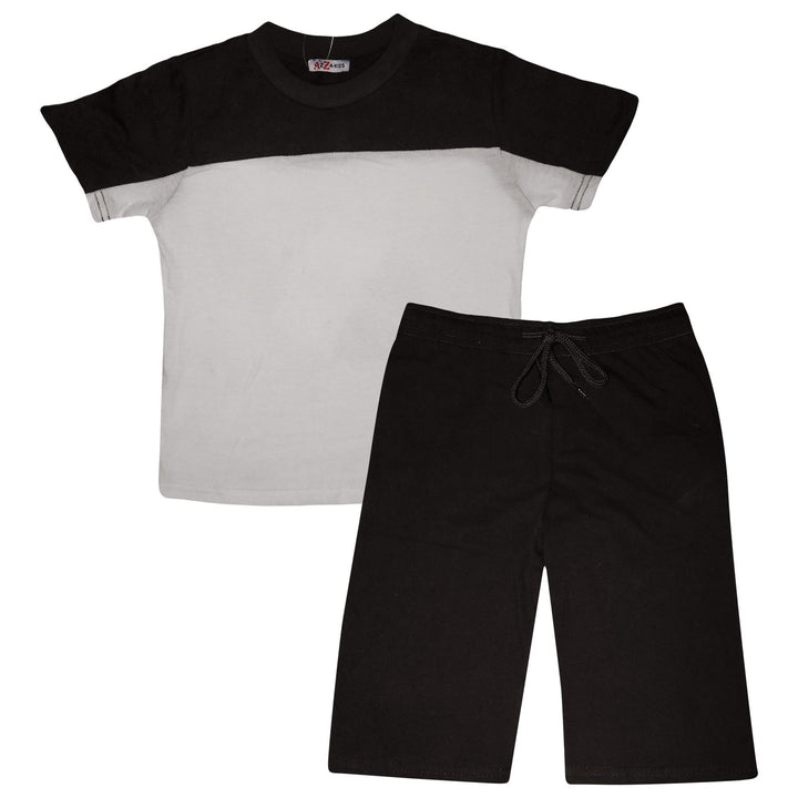 A2Z 4 Kids Two Colour Block Contrast Panel Black Top & Shorts Set Short Sleeves T Shirt Summer Outfit 2 Piece Activewear Girls Boys Age 5-13 Years