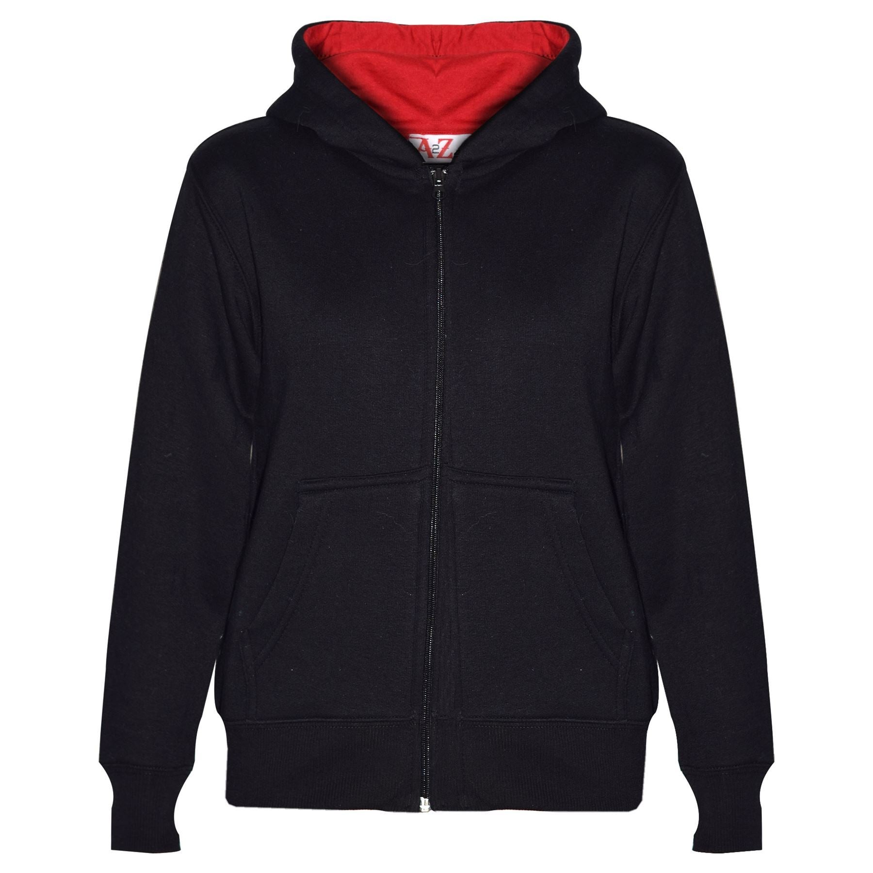 A2Z 4 Kids Unisex Plain Tracksuit Contrast Black And Red Fleece Hoodie with Joggers Jogging Sweatpants Pants Sports Activewear Outfit Set For Childrens Girls Boys Age 5-13 Years