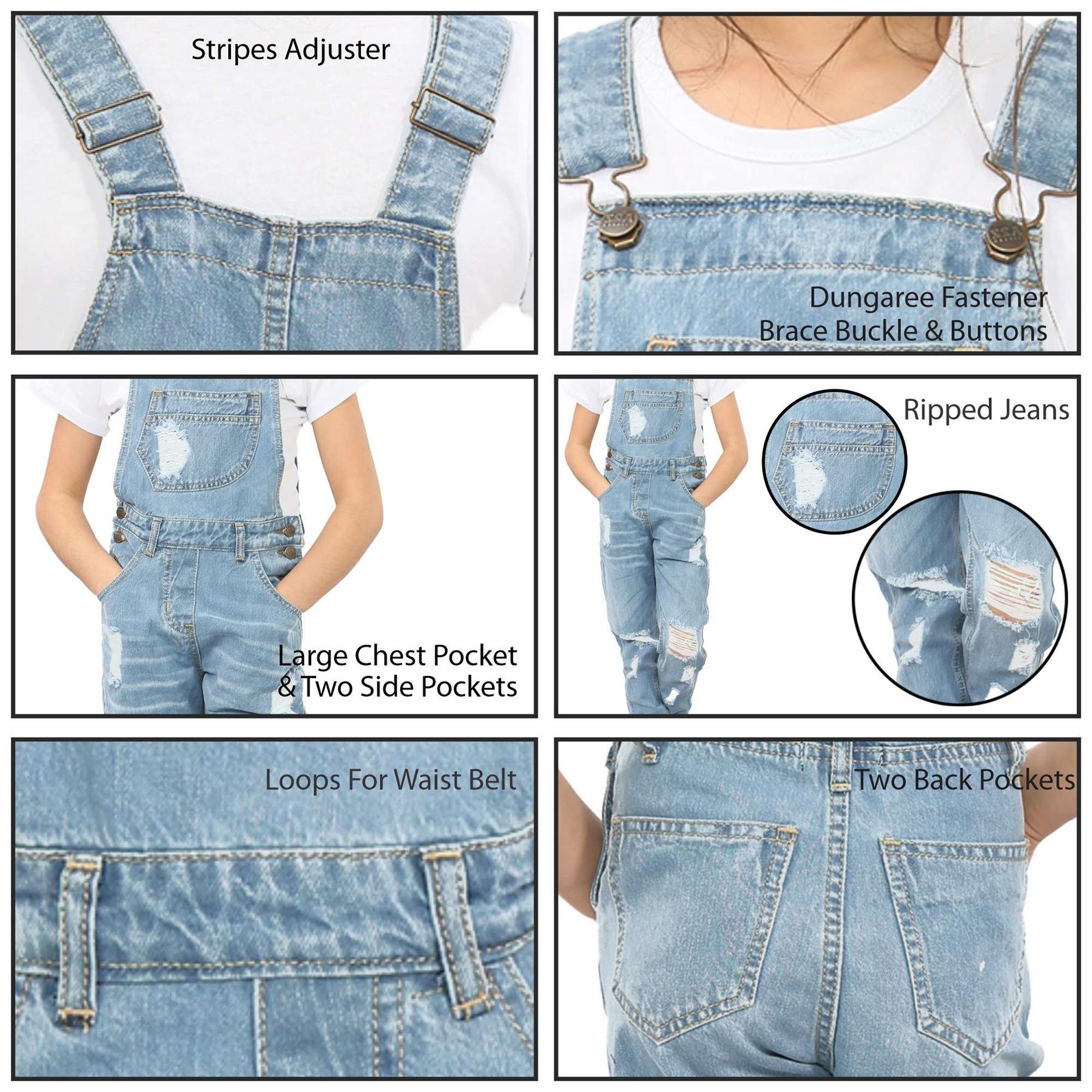 A2Z 4Kids Girls Dungaree Ripped Jeans Overall All In One Jumpsuit 5-13 Years