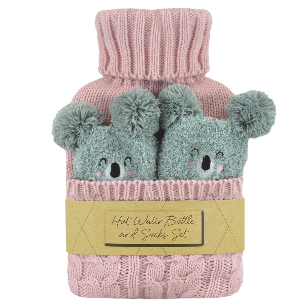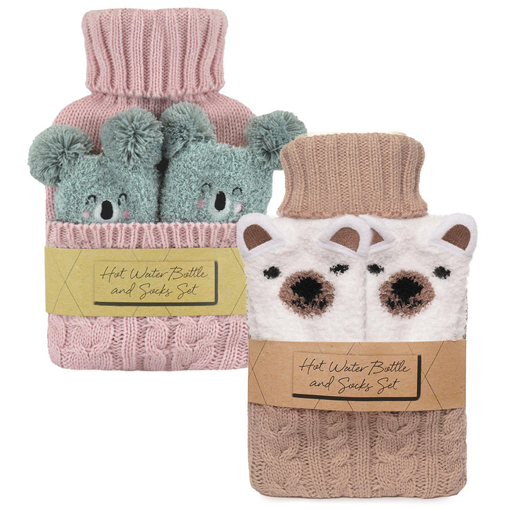 A2Z Hot Water Bottle 1 Litre Capacity Cable Knitted Cover & Cosy Socks Gift Set