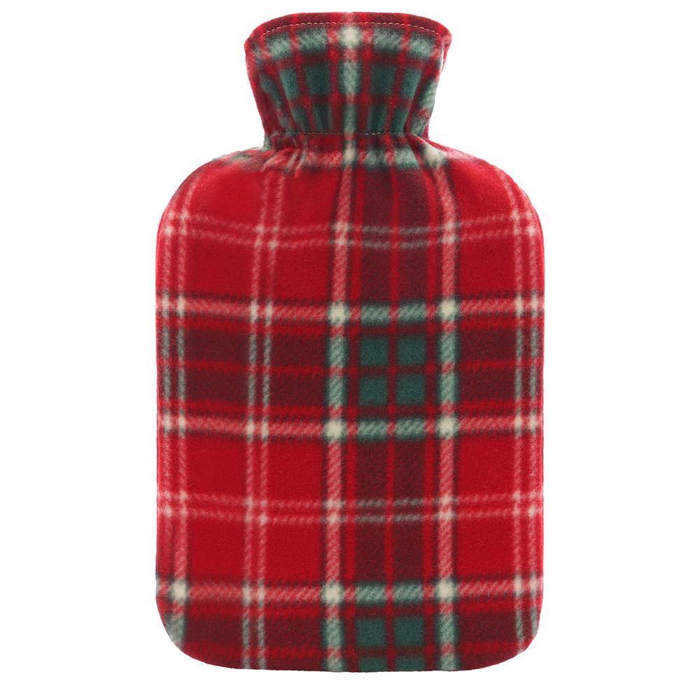 A2Z Hot Water Bottle 2 Litre Tartan Print Fleece Cover Rubber Hot Water Bag