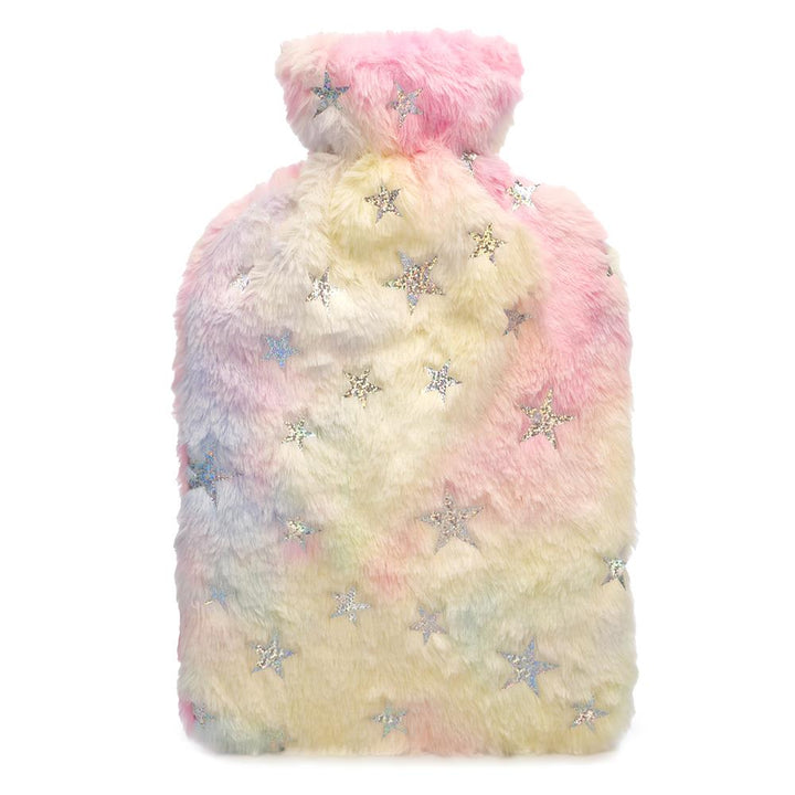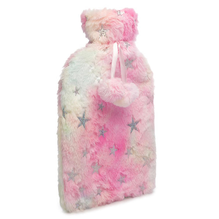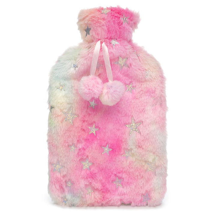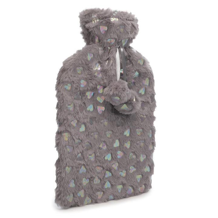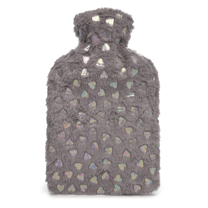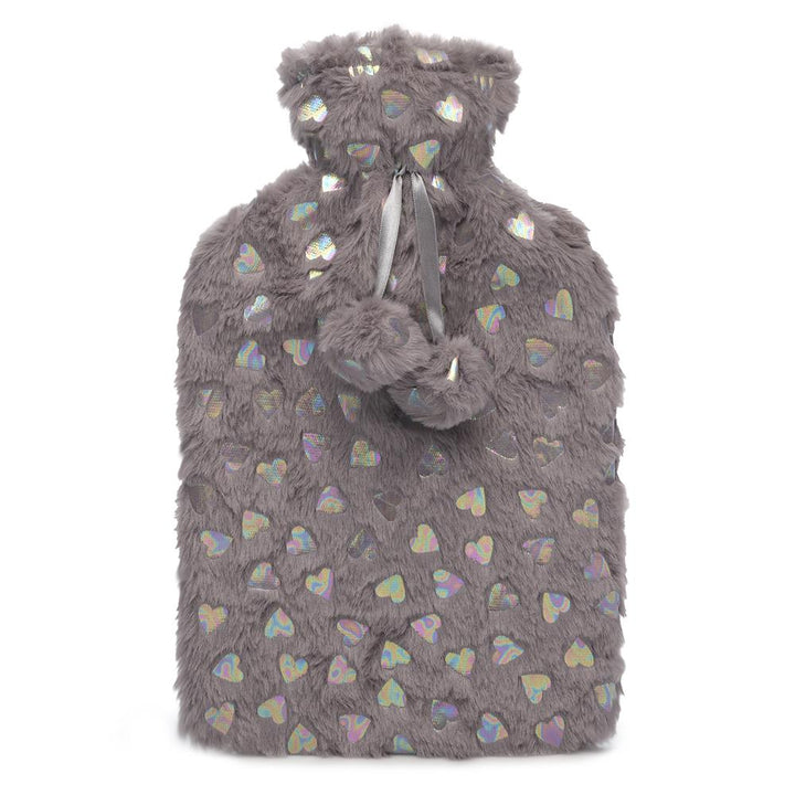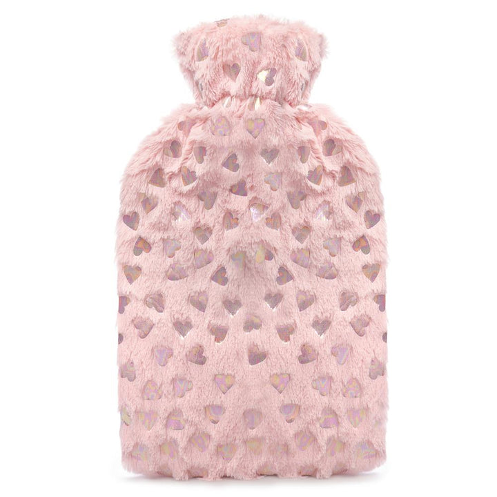 A2Z Hot Water Bottle 2L Metalic Heart & Stars Plush Fleece Cover Hot Water Bag