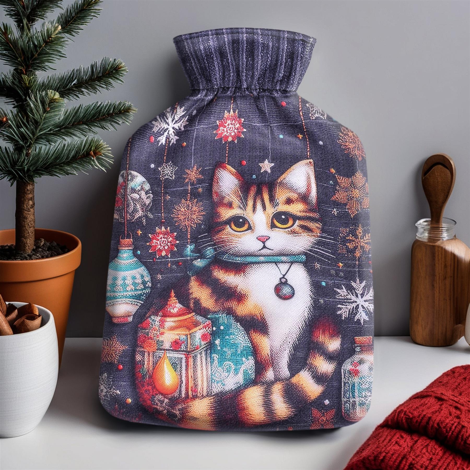 A2Z Hot Water Bottles Animal Cat Snowflake 2L Cosy Fleece Cover Heat Therapy