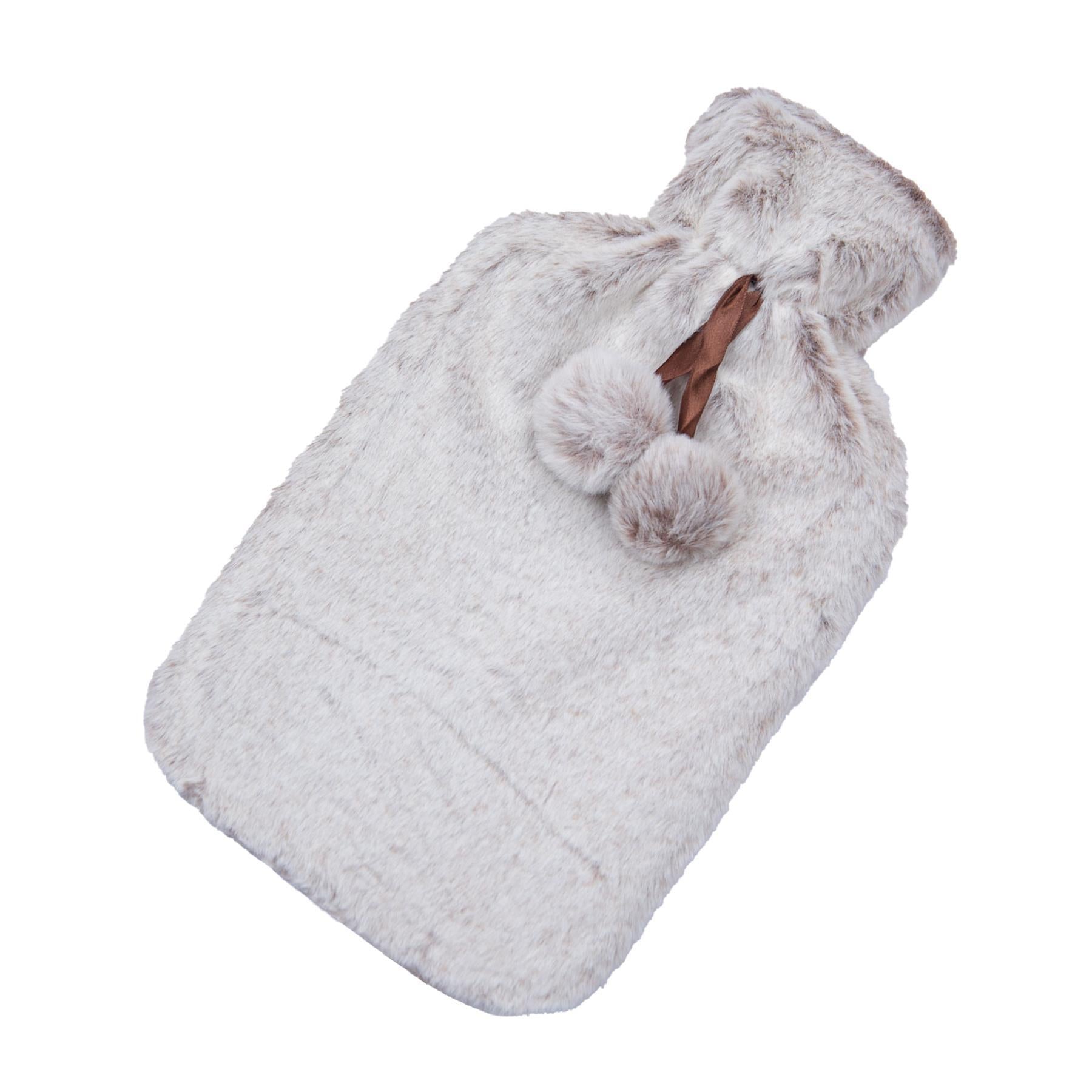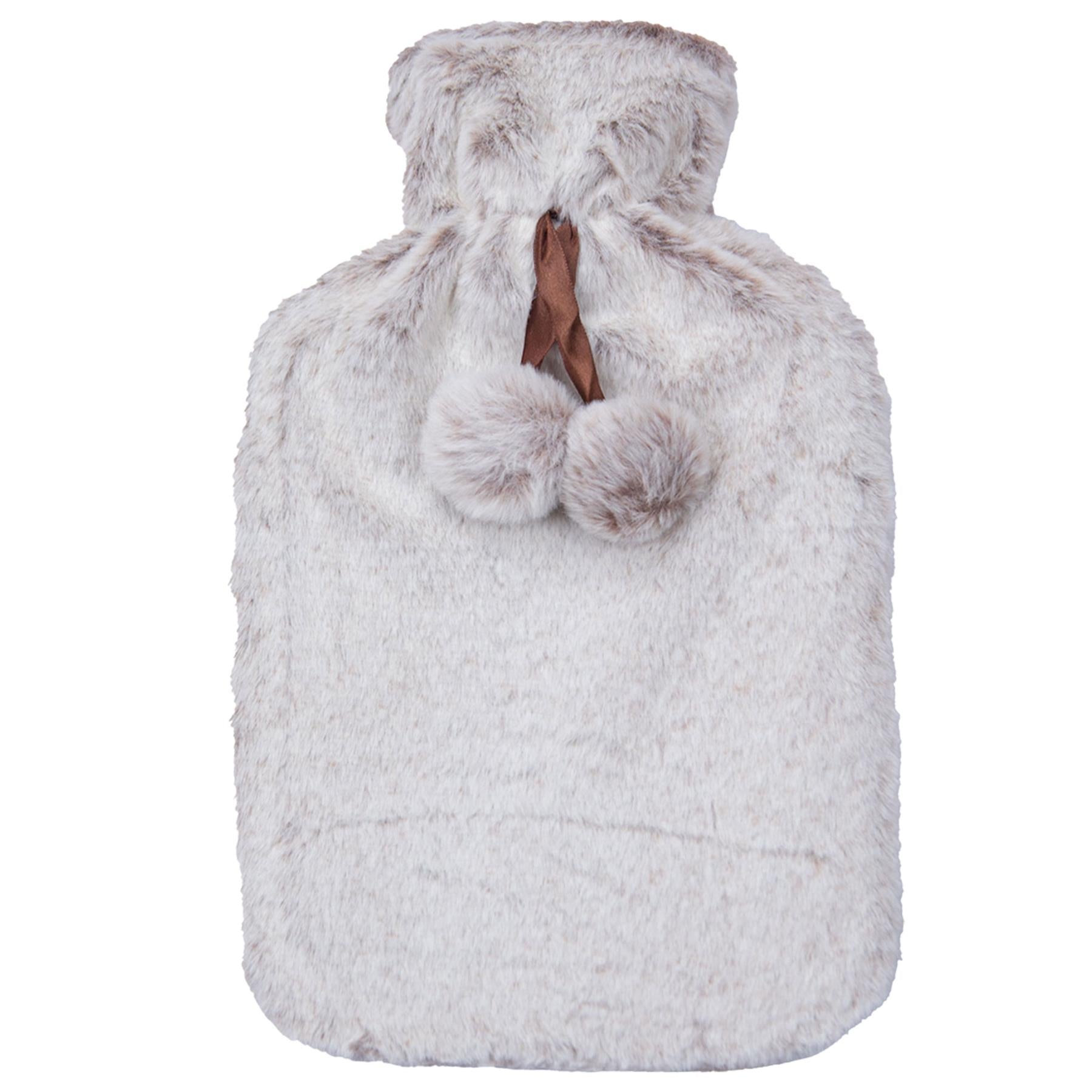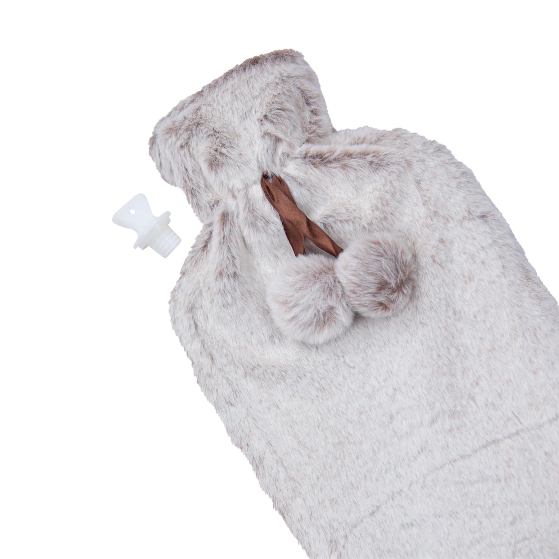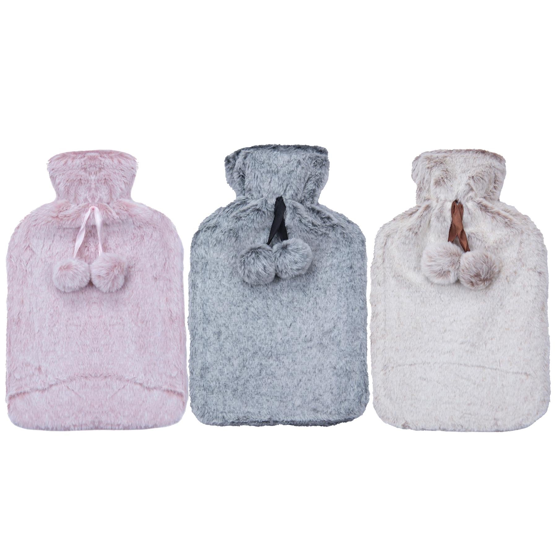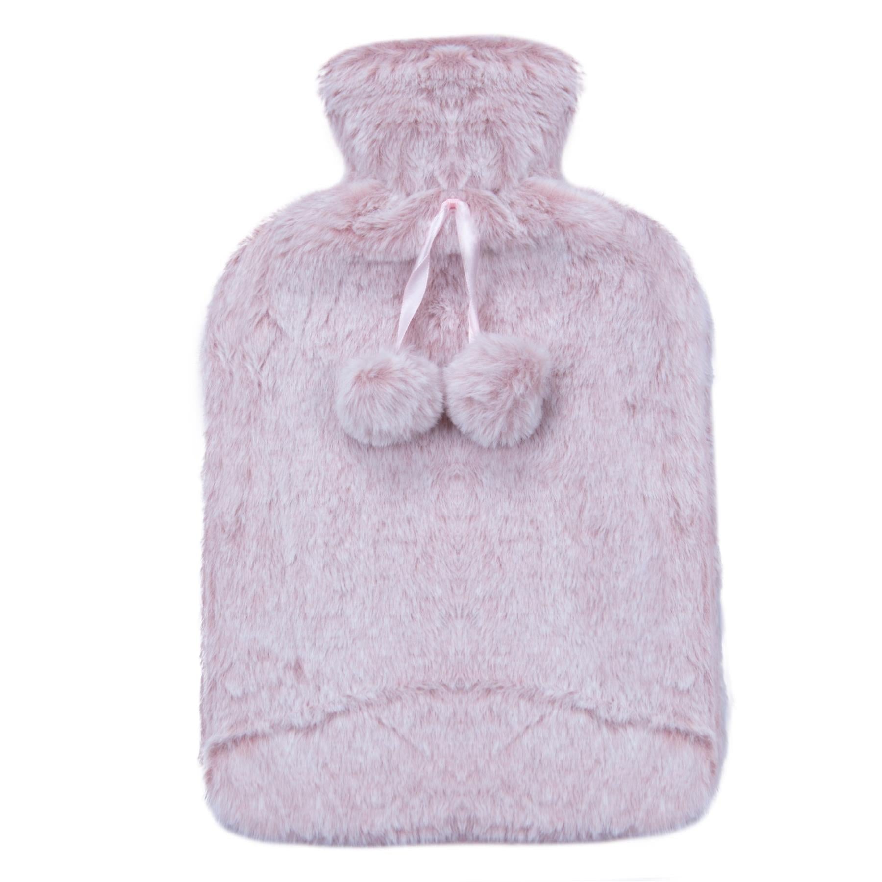 A2Z Hot Water Bottles Soft Husky Plush Pom Pom 2 Liter Fleece Cover Heat Therapy