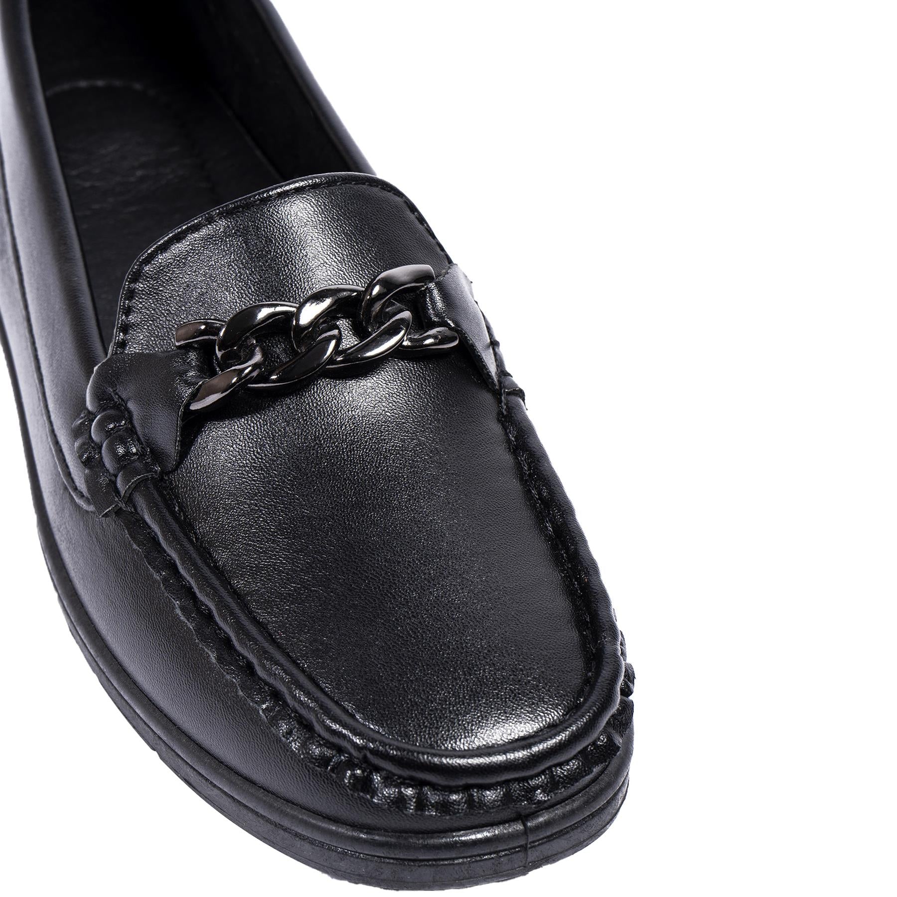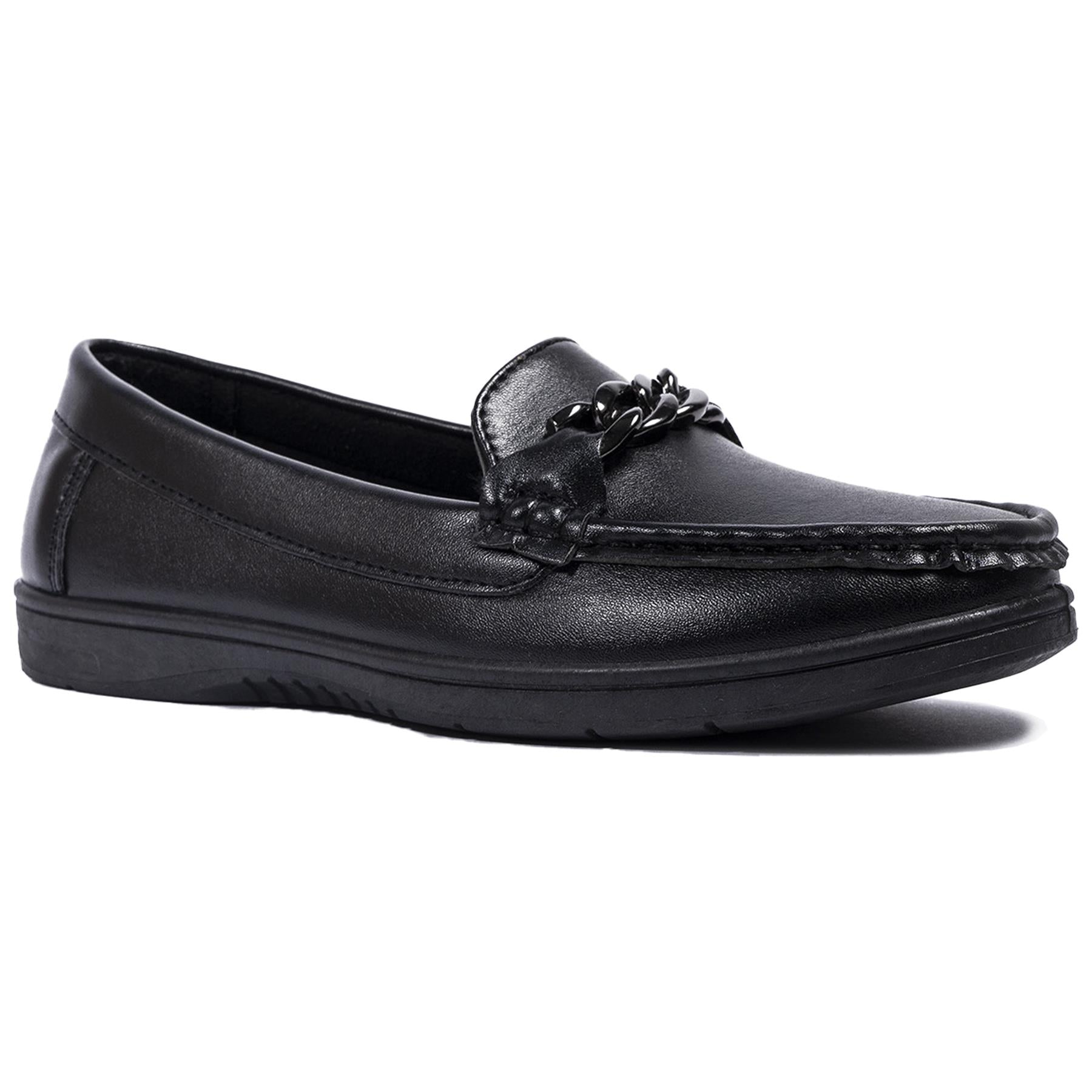 A2Z Kids Girls Women Black PU Leather Chain Decorated Shoes Low Heel School Loafers