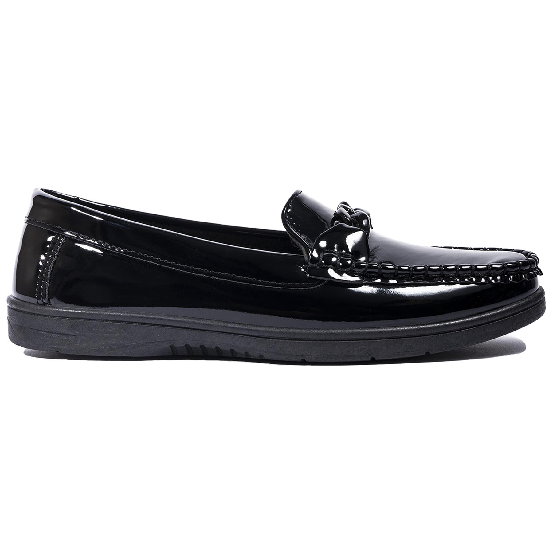 A2Z Kids Girls Women Black PU Patent Leather Chain Decorated Loafers Low Heel School
