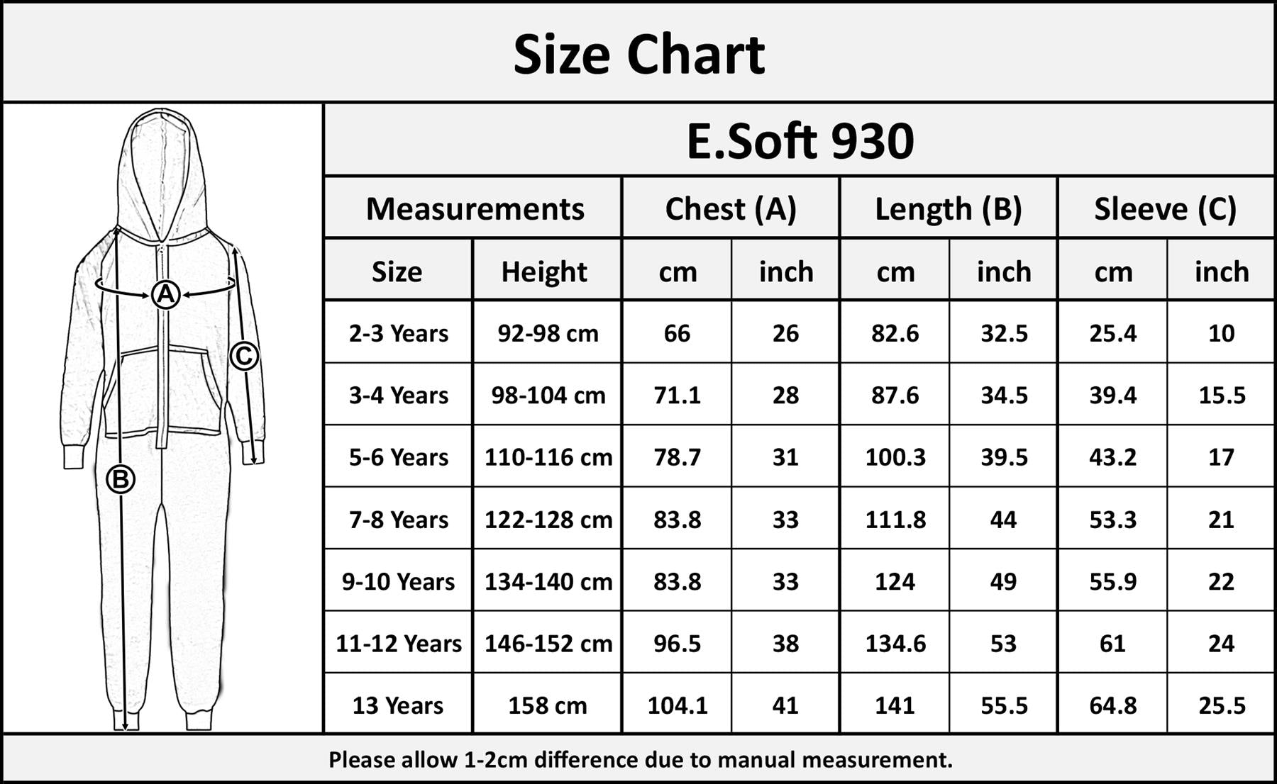 - AVAILABLE SIZES: These super-soft hooded onesie pieces are available in a wide range of sizes to suit various ages, including 2-3 Years, 3-4 years, 5-6 years, 7-8 years, 9-10 years, 11-12 years, and 13 years. This extensive size range ensures a comfortable fit for children at different stages of growth.
