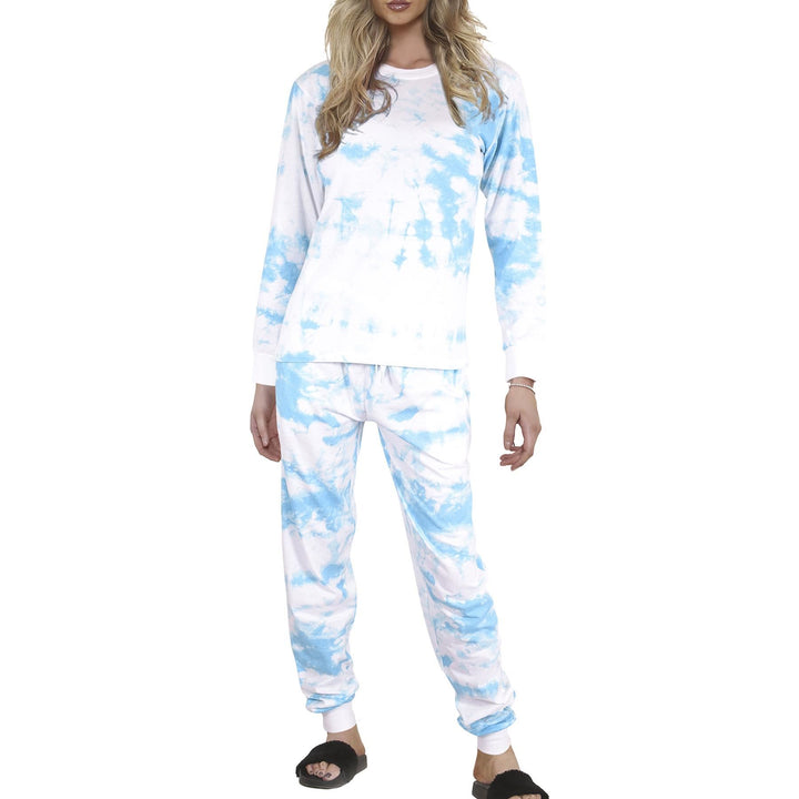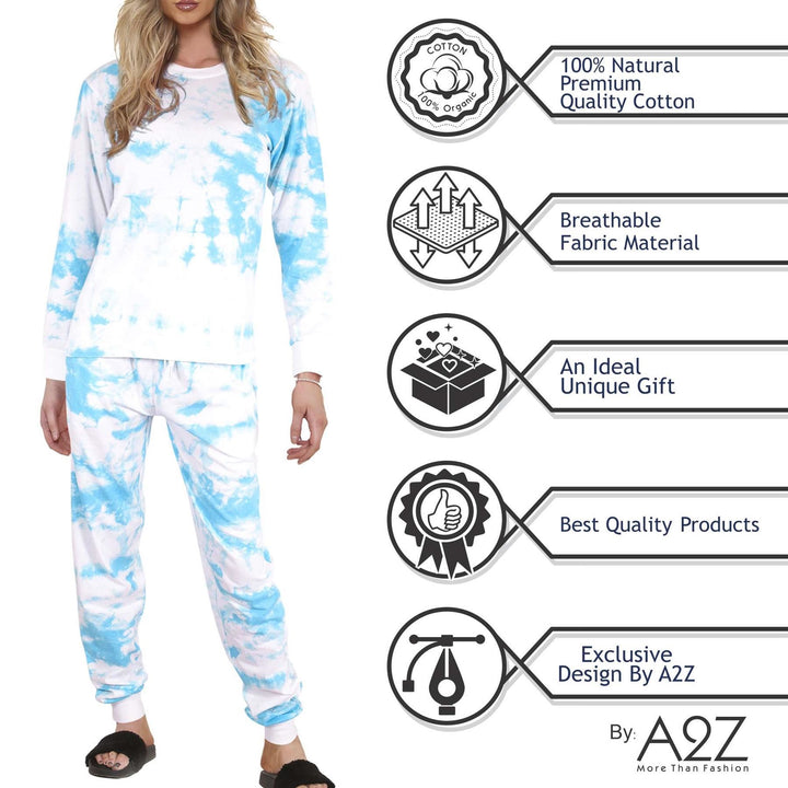A2Z Ladies 2 Piece Pyjama Set Loungewear Soft Cotton PJS Tie Dye Printed Long Sleeve Blue Top Bottom Gift for Ladies Matching PJS Lounge Suit S/M/L/XL/2XL