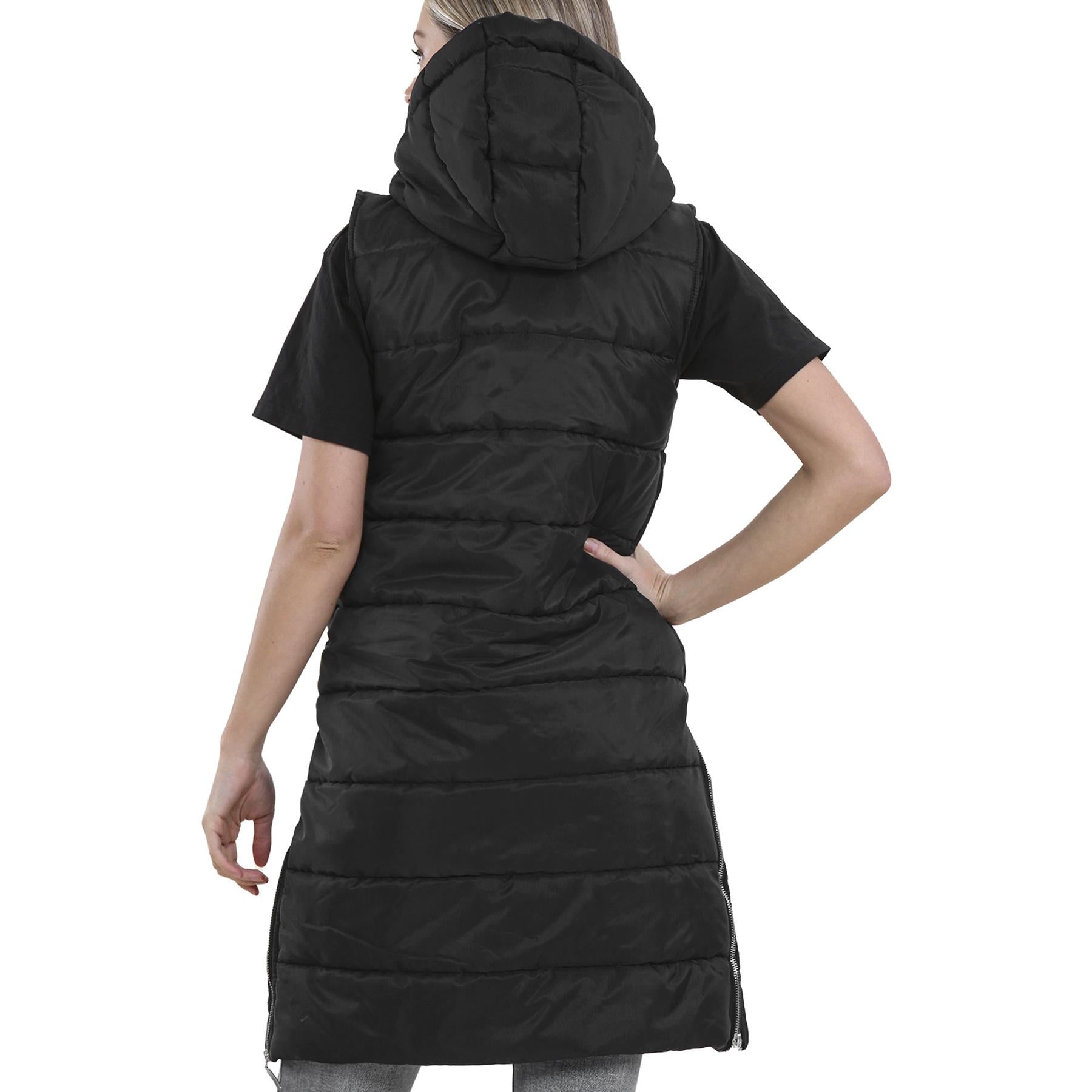 A2Z Ladies Adults Sleeveless Gilet Oversized Black Hooded Quilted Gilet Padded Long Line Vest Jacket Sleeveless Coat Urban Winter Wear