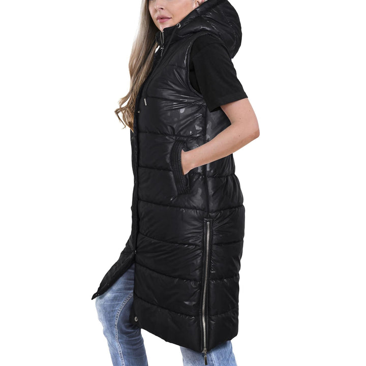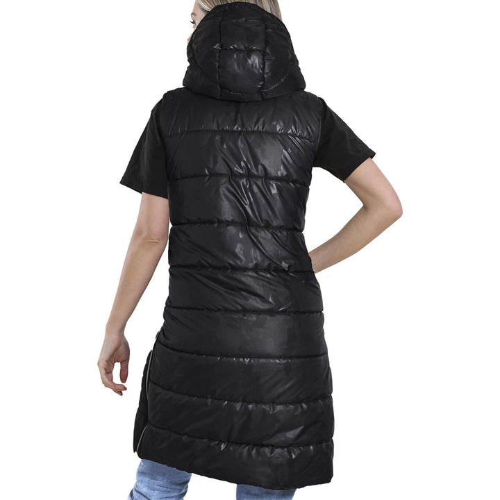 A2Z Ladies Adults Sleeveless Gilet Oversized Camo Black Hooded Quilted Gilet Padded Long Line Vest Jacket Sleeveless Coat Urban Winter Wear