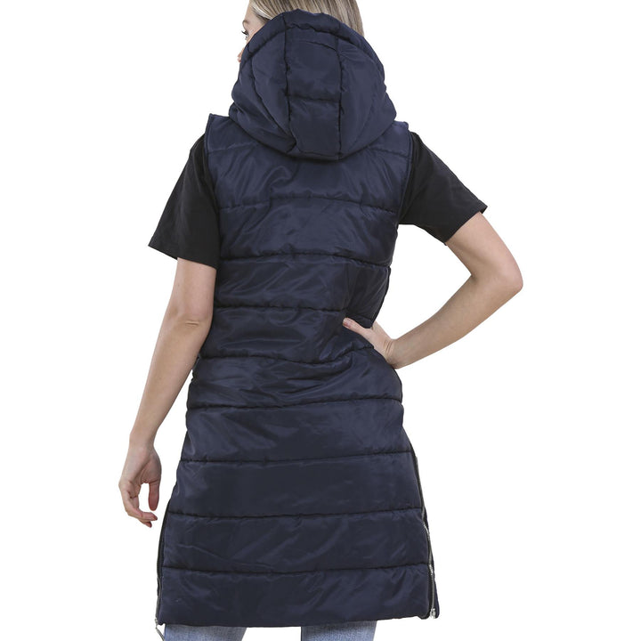 A2Z Ladies Adults Sleeveless Gilet Oversized Navy Hooded Quilted Gilet Padded Long Line Vest Jacket Sleeveless Coat Urban Winter Wear
