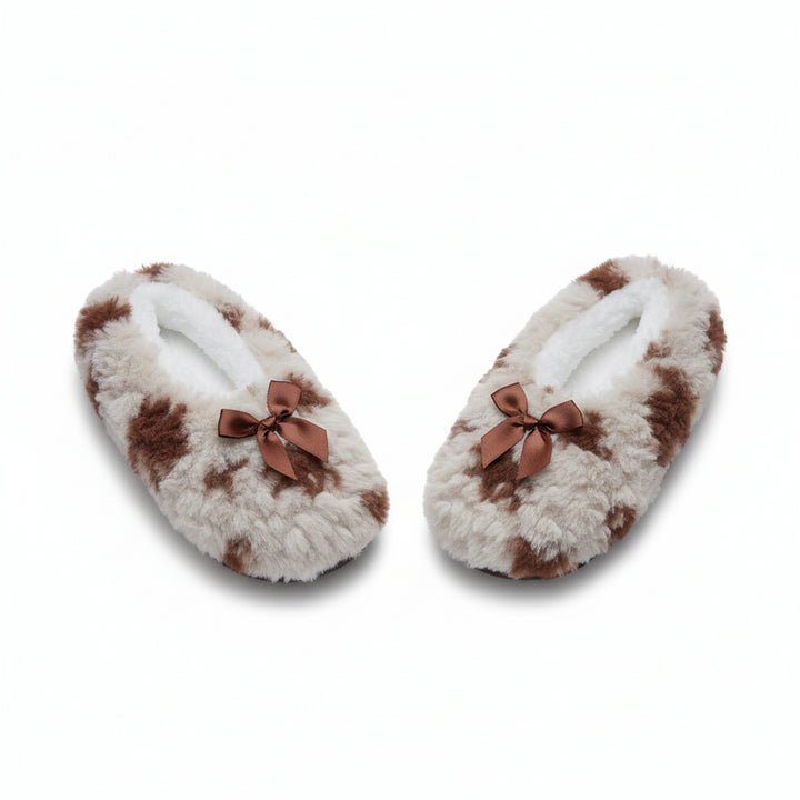 A2Z Ladies Cow Print Slipperette Cosy Faux Fur Indoor Slippers UK Size 4-8