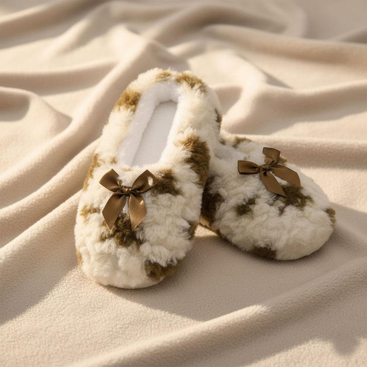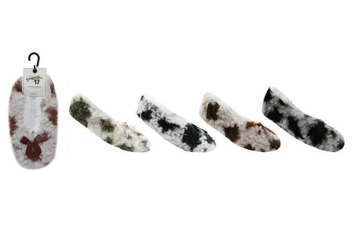 Step into warmth with these Ladies Cow Print Slipperettes socks, featuring adorable faux fur Cow patterns in stylish tones. Perfect for everyday indoor wear, relaxing at home, or gifting during winter. Ideal for bedrooms, lounges, or as travel slippers for comfort on the go.