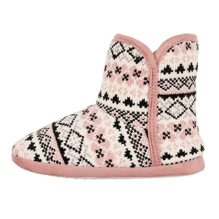 Available in elegant pink with a traditional Fairisle print and sizes 3/4, 5/6 and 7/8, these slippers make a thoughtful gift for birthdays, Christmas, or Mothers Day. A wonderful addition to any womans winter wardrobe for ultimate comfort and charm.