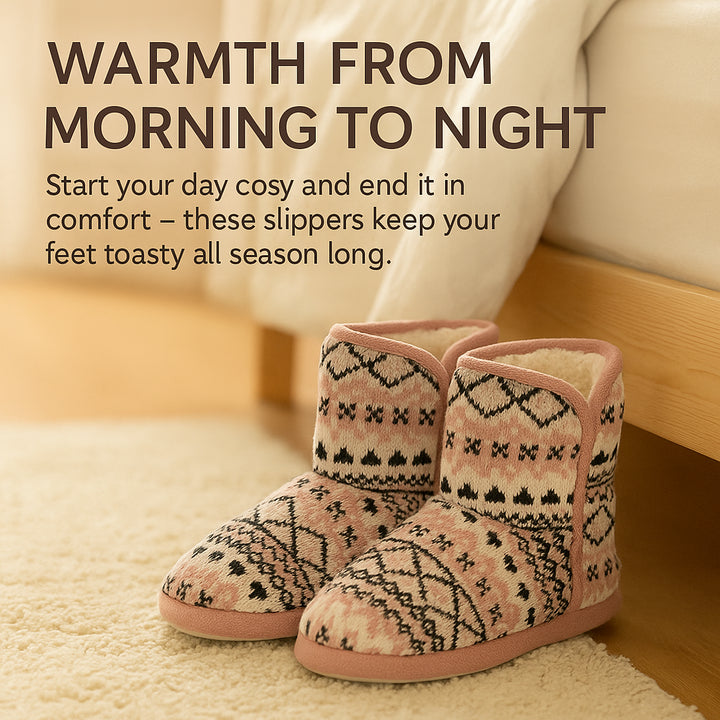 A2Z Ladies Fairisle Bootie Slippers Warm Plush Lined Non Slip Indoor Shoes