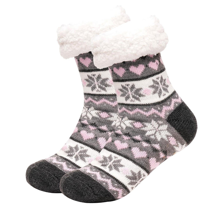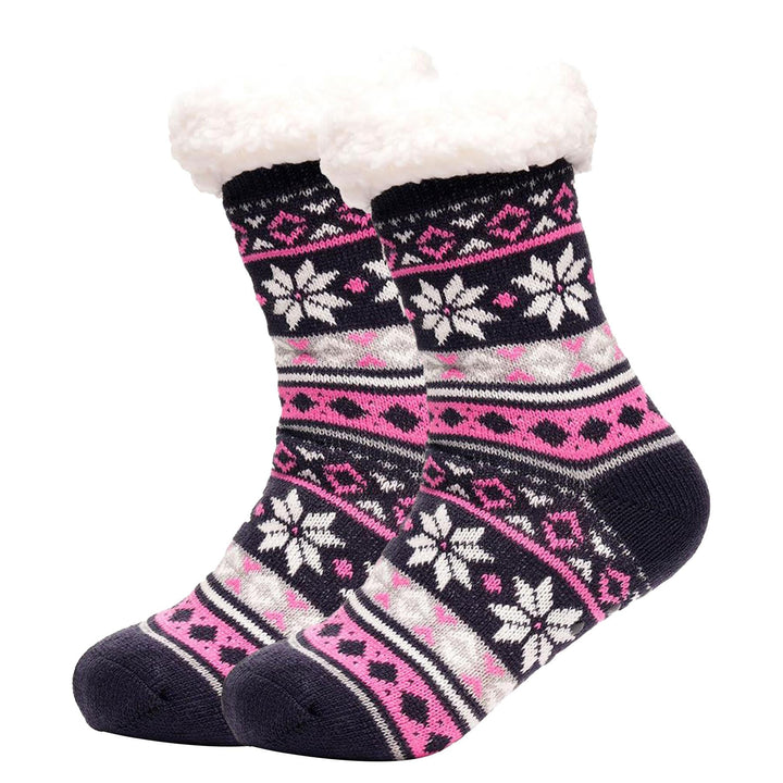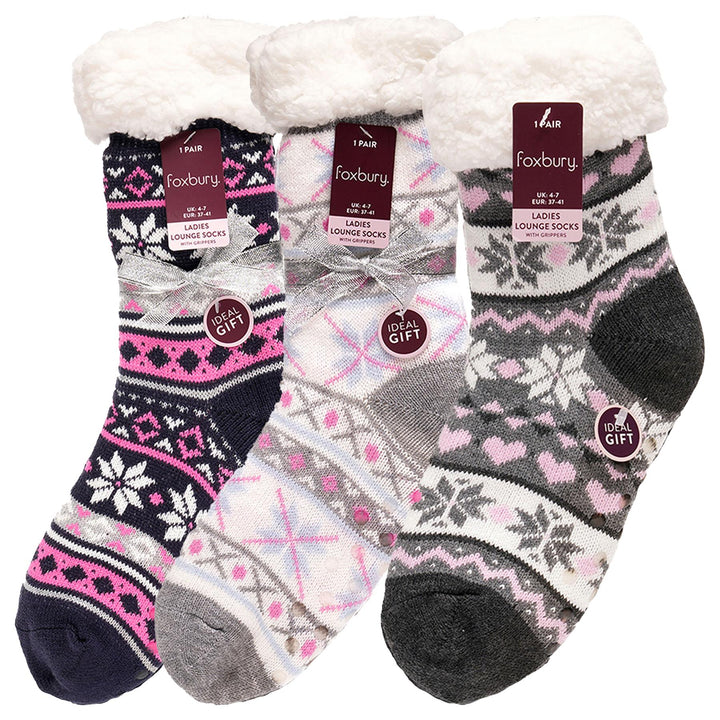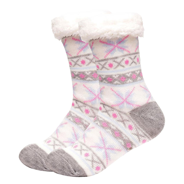 A2Z Ladies Fairisle Lounge Socks With Sherpa Lining Gripper Anti Slip Women Sock