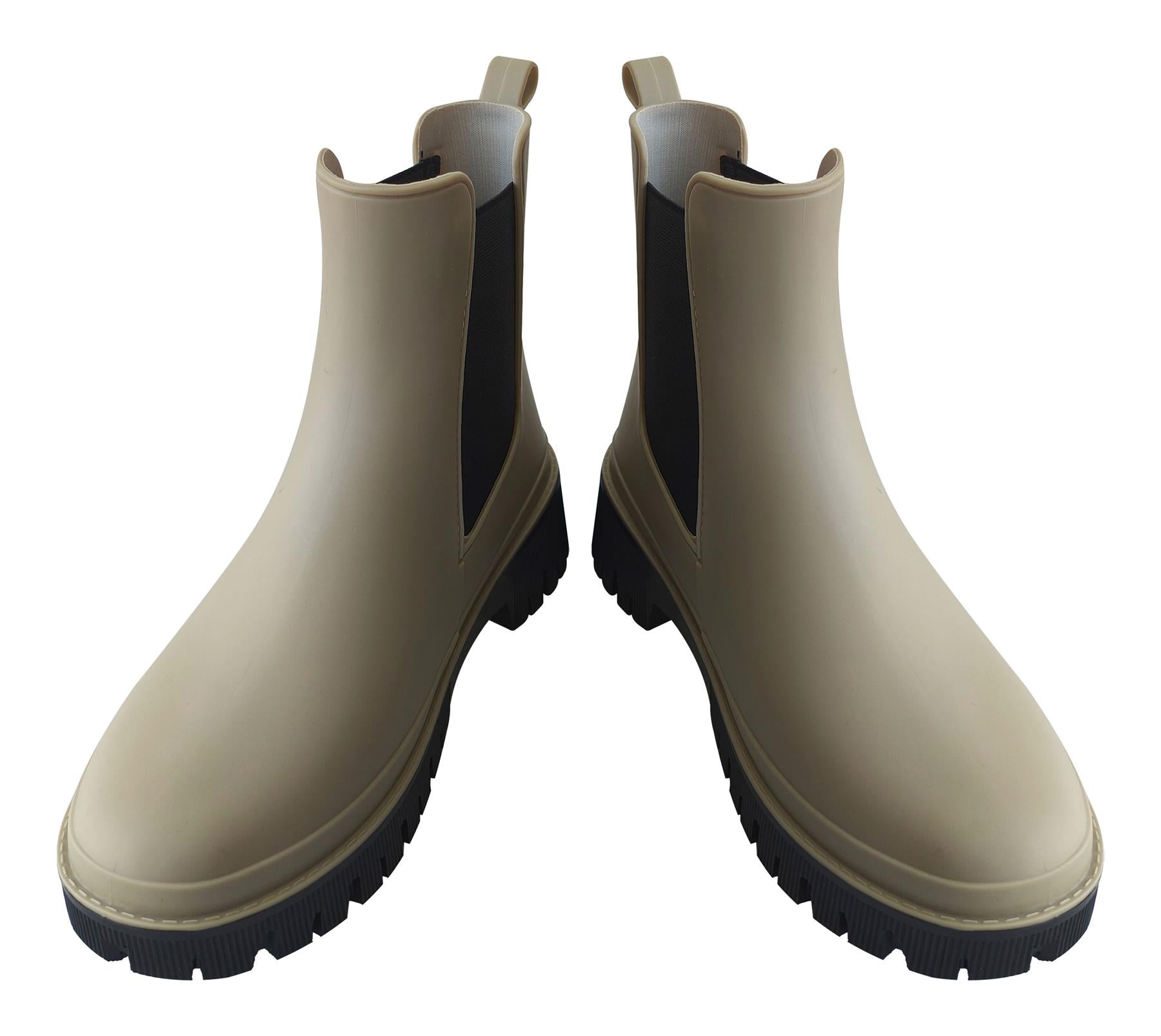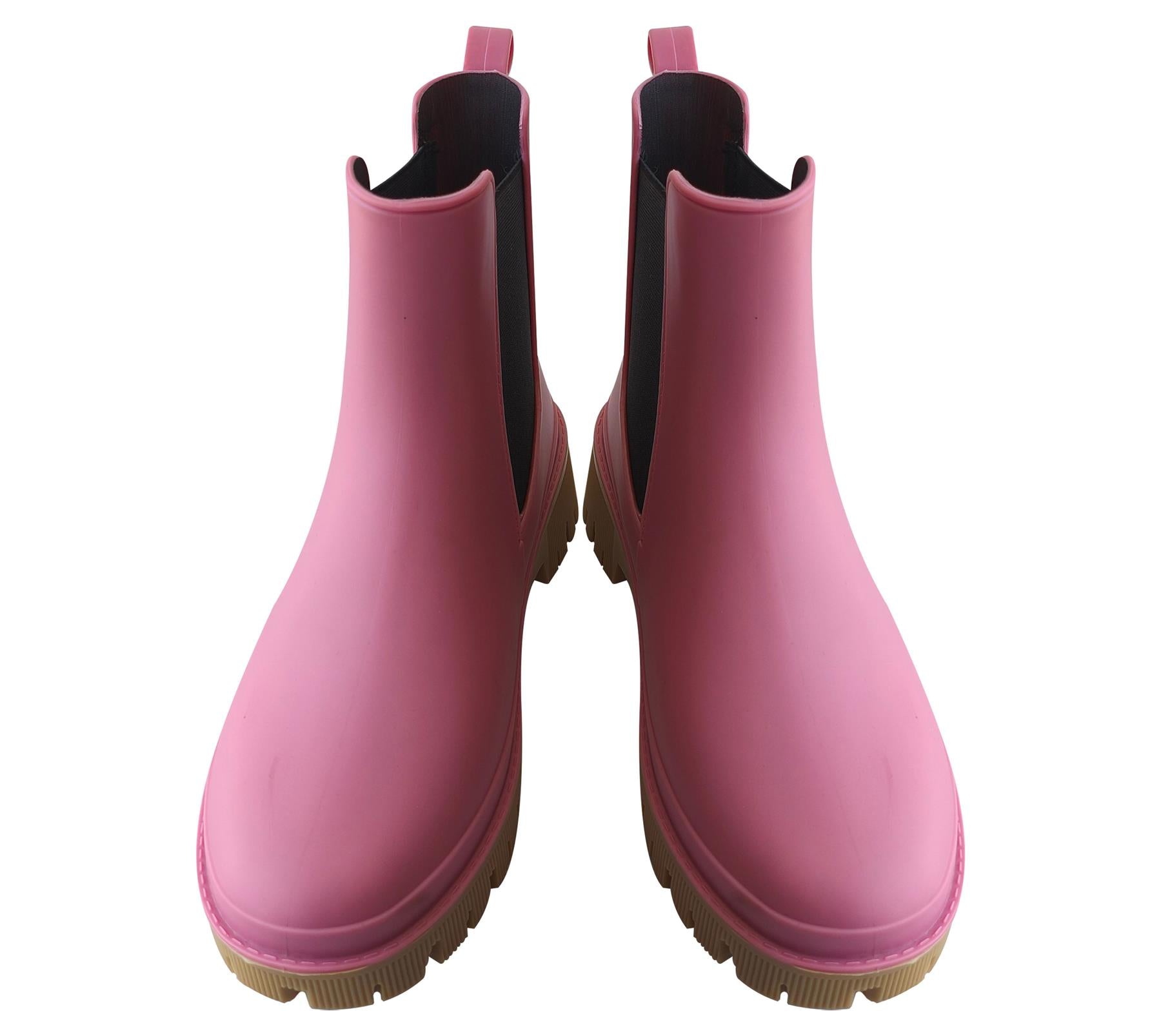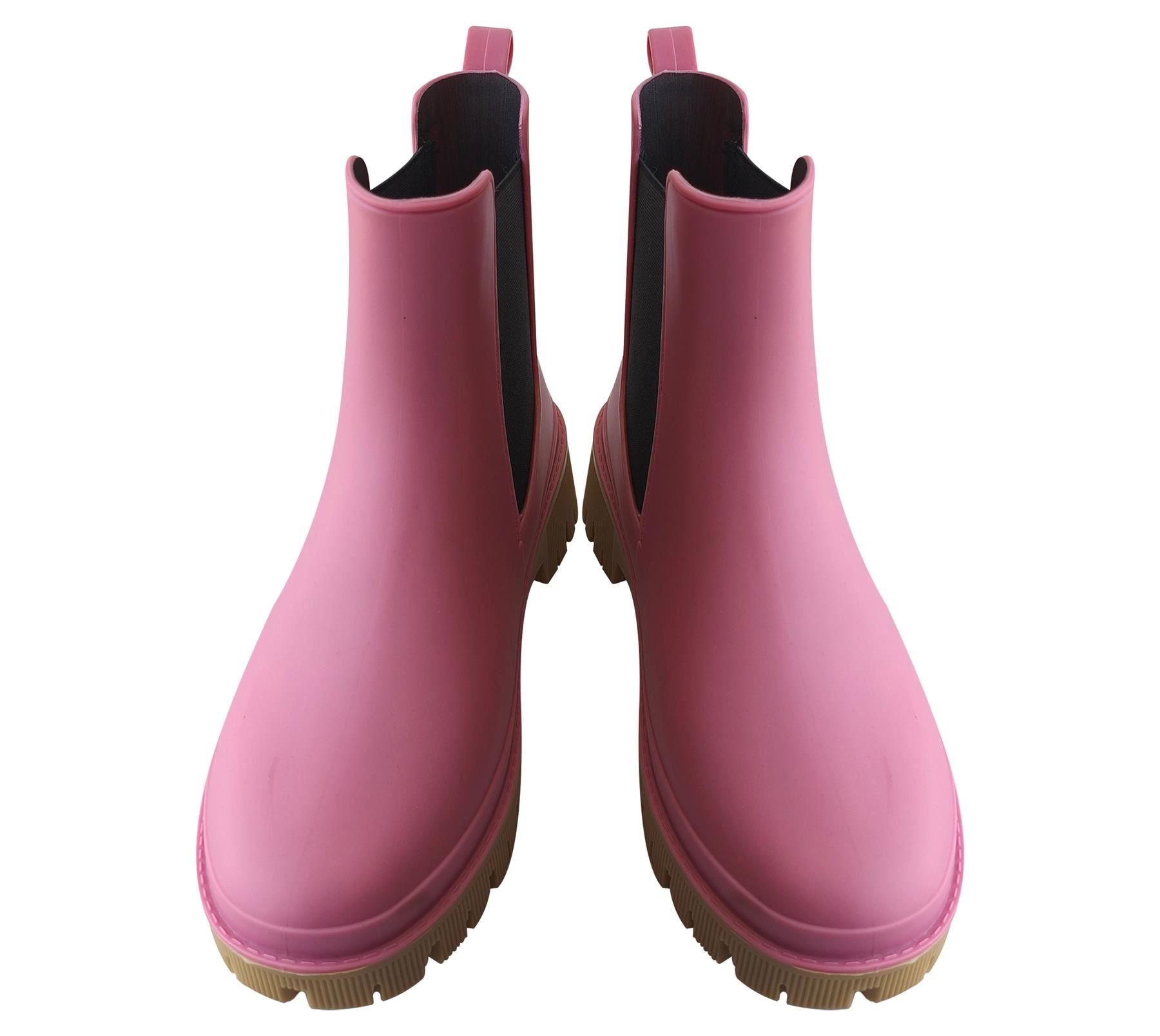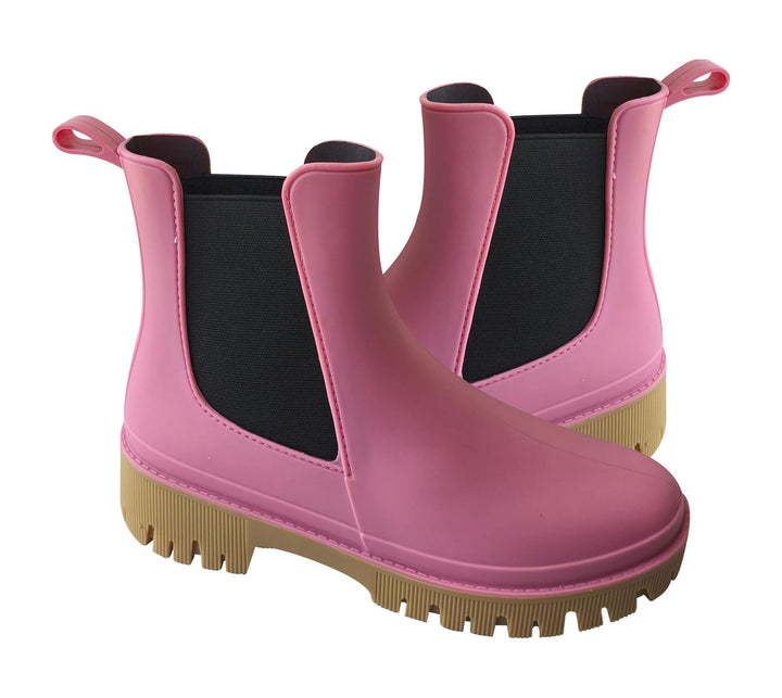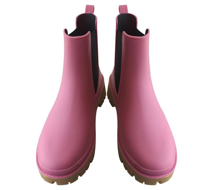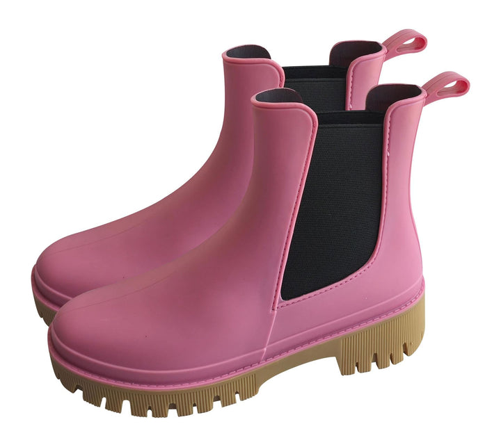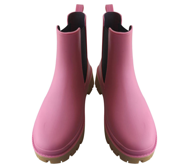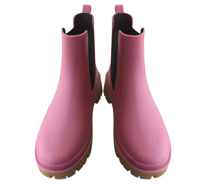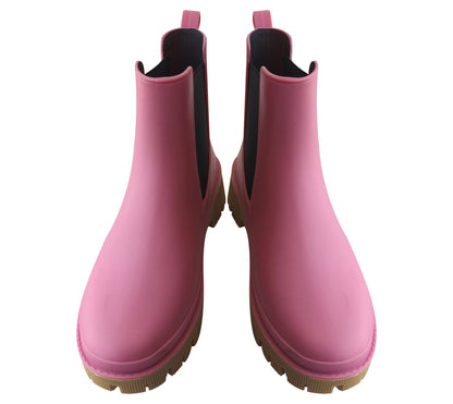 Featuring a sleek Chelsea boot silhouette, these wellies combine classic style with practical waterproof protection. Available in Pink and Beige, they pair effortlessly with casual or outdoor outfits, adding a pop of colour and flair to dull wet days.