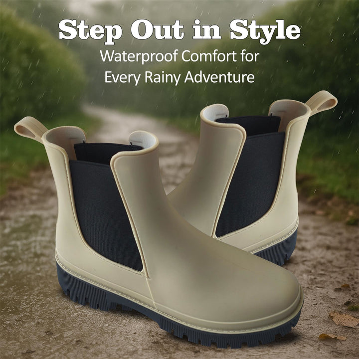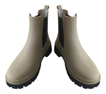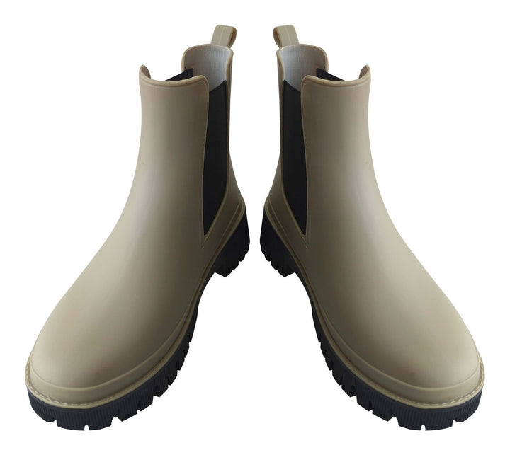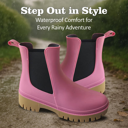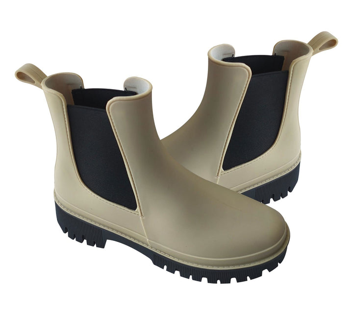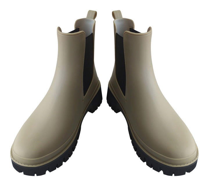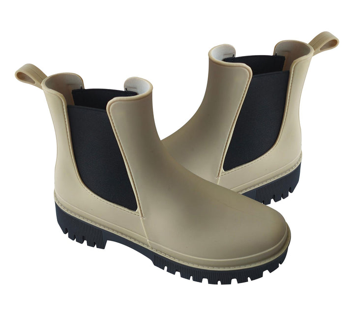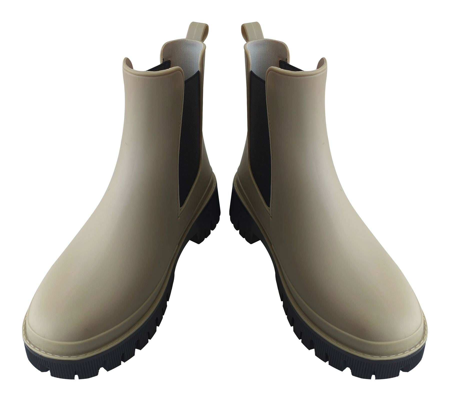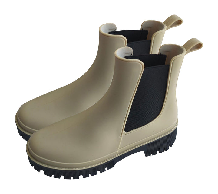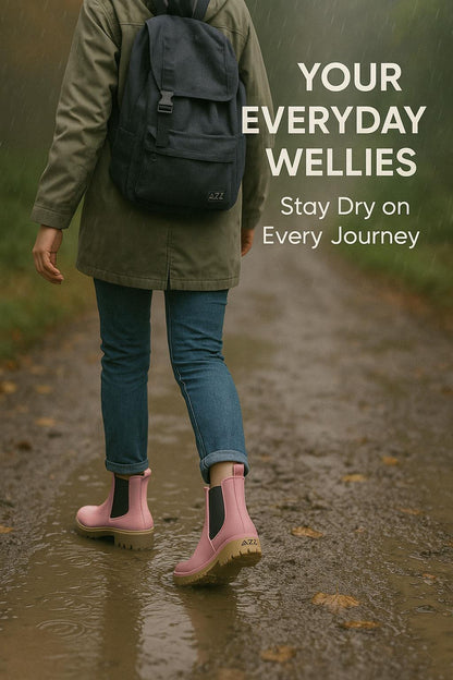 Featuring a sleek Chelsea boot silhouette, these wellies combine classic style with practical waterproof protection. Available in Pink and Beige, they pair effortlessly with casual or outdoor outfits, adding a pop of colour and flair to dull wet days.