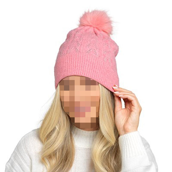 A2Z Ladies Hat Cable Knit Beanie Diamante Pom Pom Stretchy Winter Warm Cozy Hats
