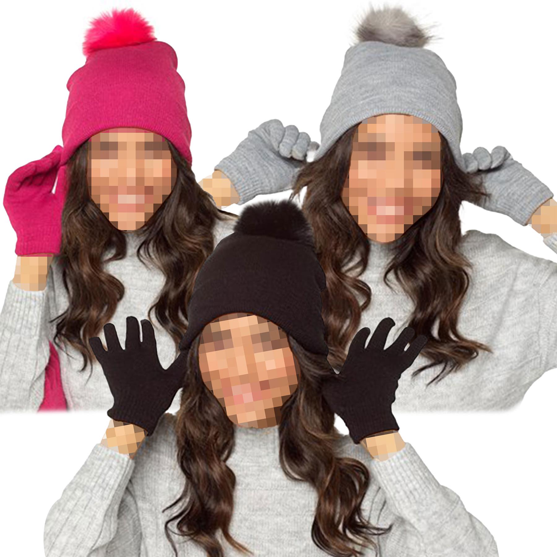 A2Z Ladies Hat Gloves Fairisle Knit Beanie Pom Pom Winter Warm Cozy Gloves Set