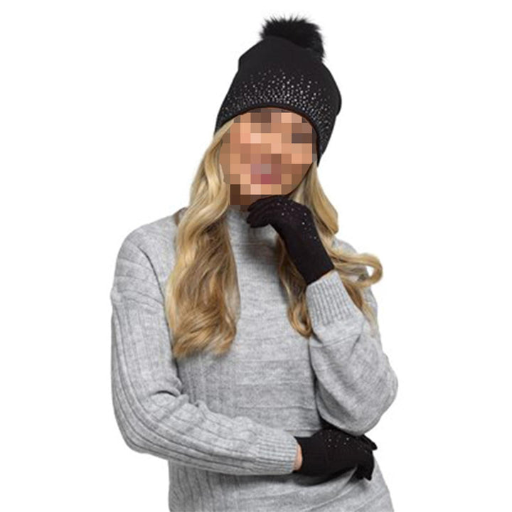 Introducing our Hat with Pompom & Gloves Set with Diamantes, the perfect accessory to elevate your winter wardrobe. This luxurious set seamlessly combines warmth, insulation, and a touch of glamour, keeping you cozy without compromising on style. The sparkling diamantes add a subtle yet sophisticated shine, while the playful pompom on the hat adds a fun, trendy twist, Stay chic, stay warm, and embrace the season with confidence where comfort and elegance unite.