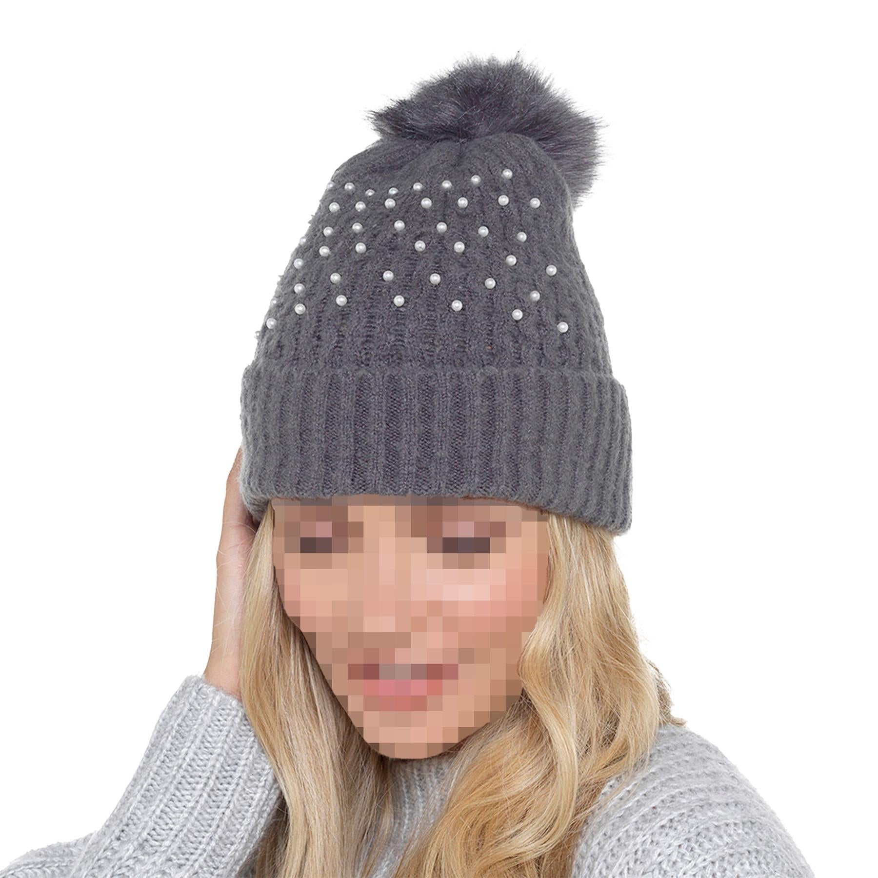 A2Z Ladies Hat Ribbed Pearls Knit Bobble Pom Pom Stylish Winter Warm Cozy Hats
