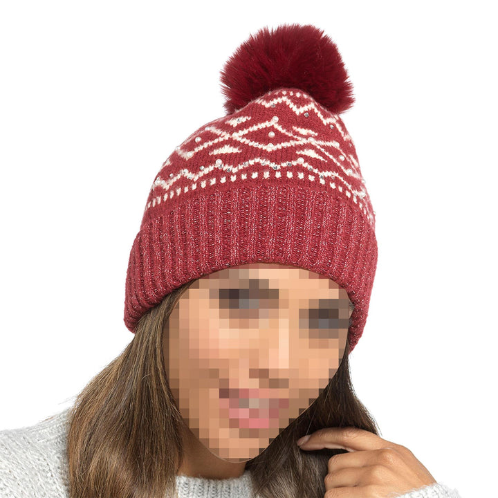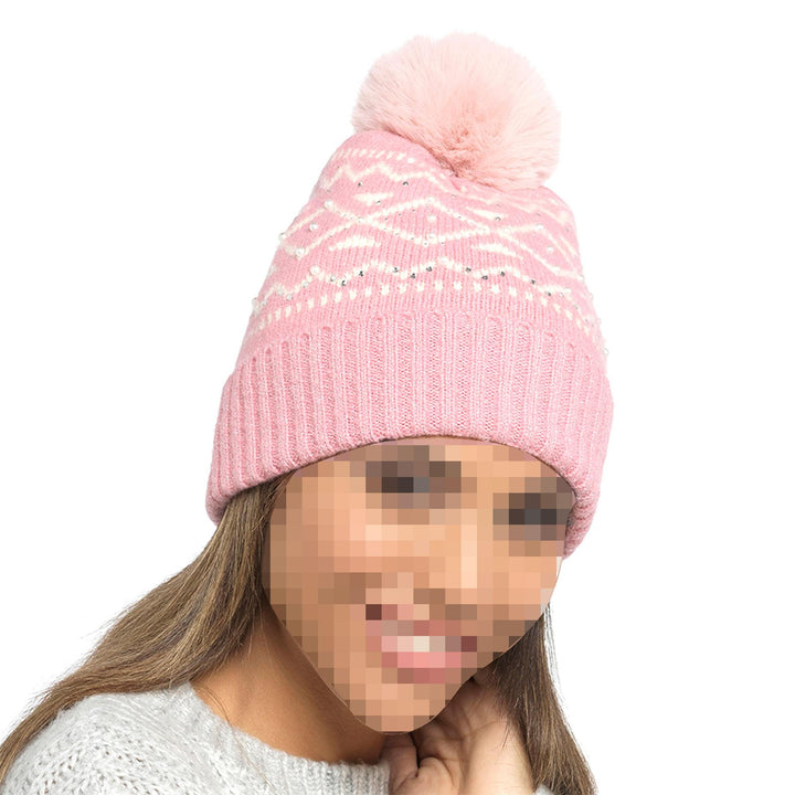 A2Z Ladies Hats Bead Detail Knit Bobble Beanie Pom Pom Winter Warm Women Caps