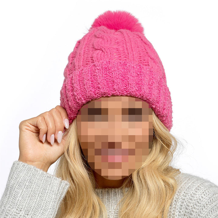 The Womens Cable Chunky Bobble Knitted Faux Fur Pom Pom Beanie is a functional and stylish accessory that enhances everyday outfits. This beanie features thermal insulation, providing essential warmth and comfort during the colder winter months. Its versatile design allows it to coordinate easily with various clothing styles, ensuring women stay cosy and fashionable during outings.