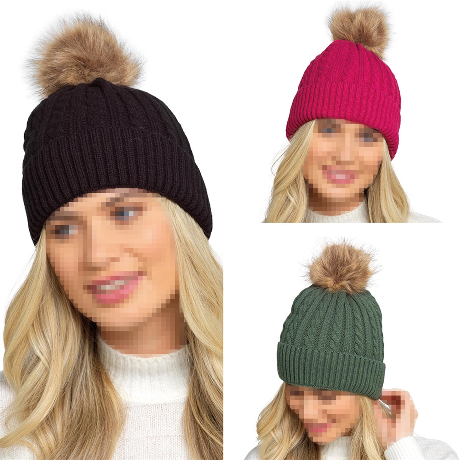 A2Z Ladies Hats Cable Knit Bobble Beanie Faux Fur Pom Pom Winter Warm Cozy Caps