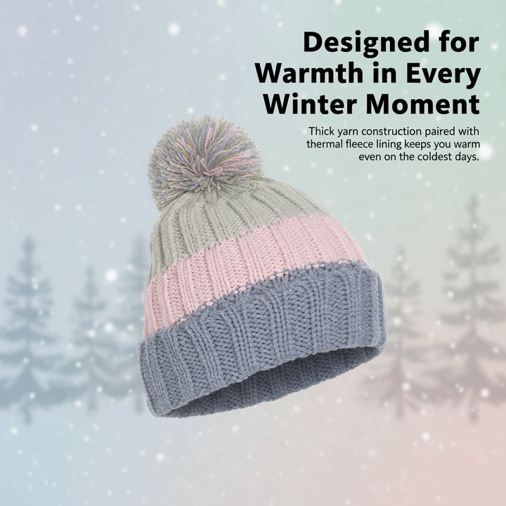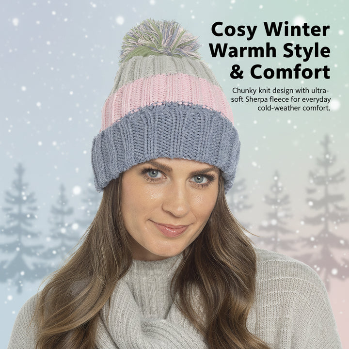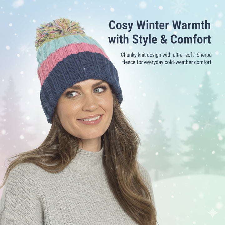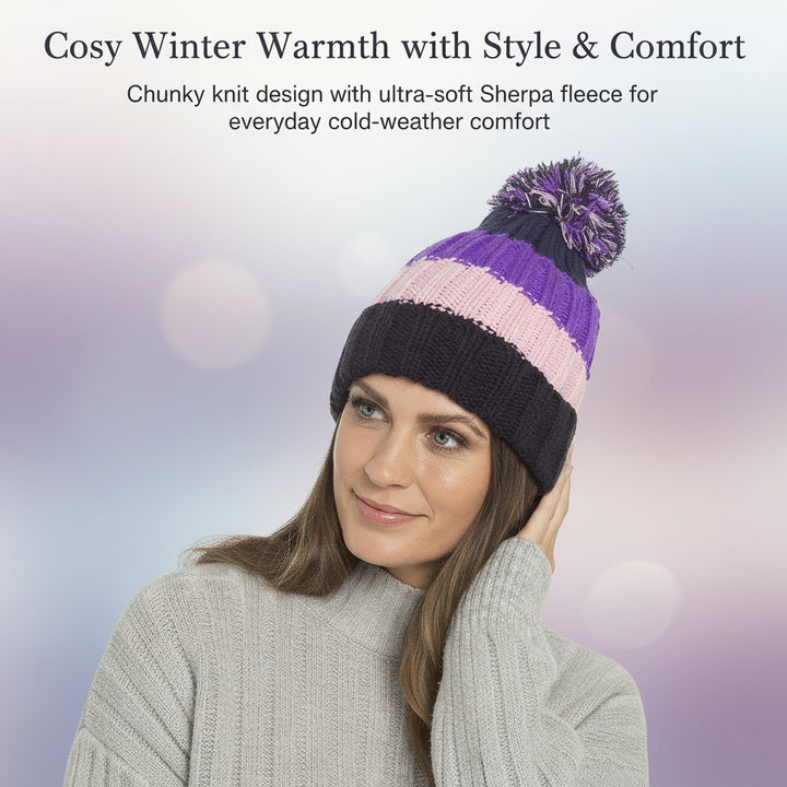 A2Z Ladies Knitted Beanie With Sherpa Lining Pom Pom Warm Winter Hat One Size