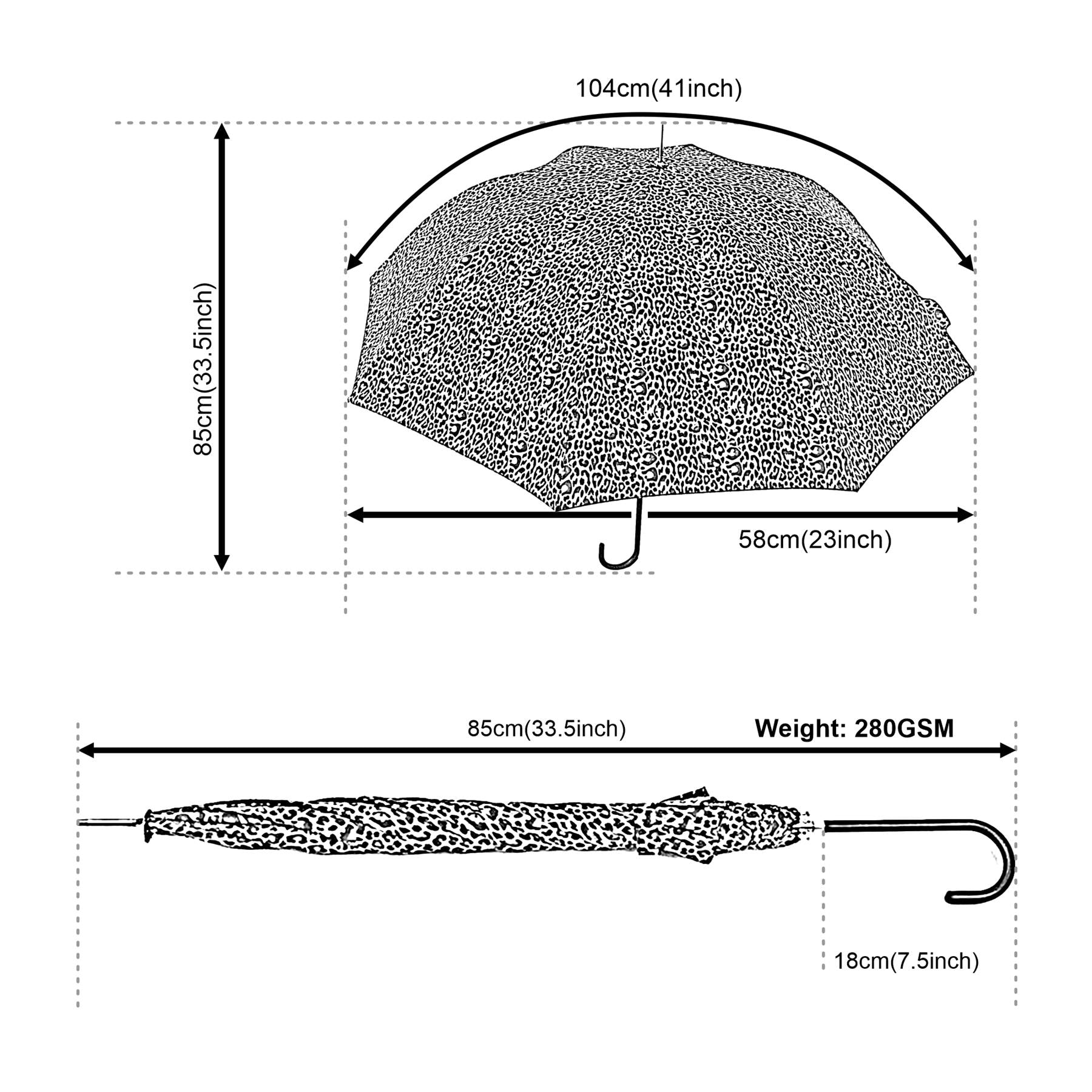 Embrace timeless style with our classic crook handle, providing a secure grip and sophisticated appeal. The Leopard Print add a graceful touch, ensuring you look chic and refined even in unfavourable weather conditions.