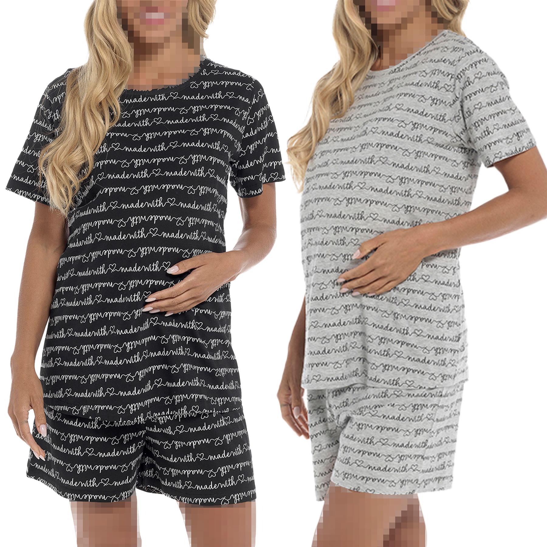 A2Z Ladies Maternity Shorts Pyjamas Set Printed Jersey Cotton Top Shorts Pyjamas Set Short Sleeves Pregnancy Nightwear PJS For Women