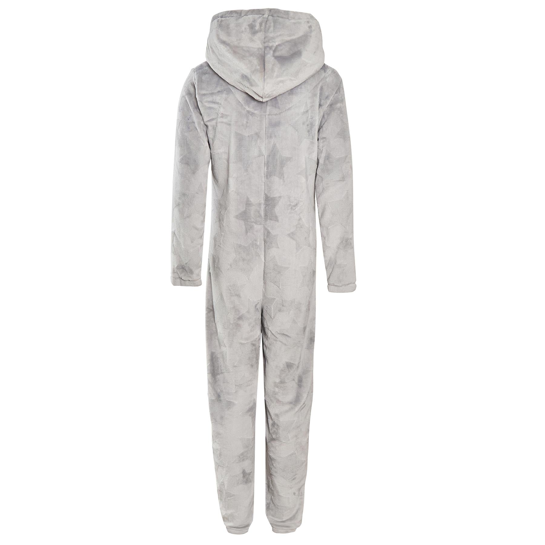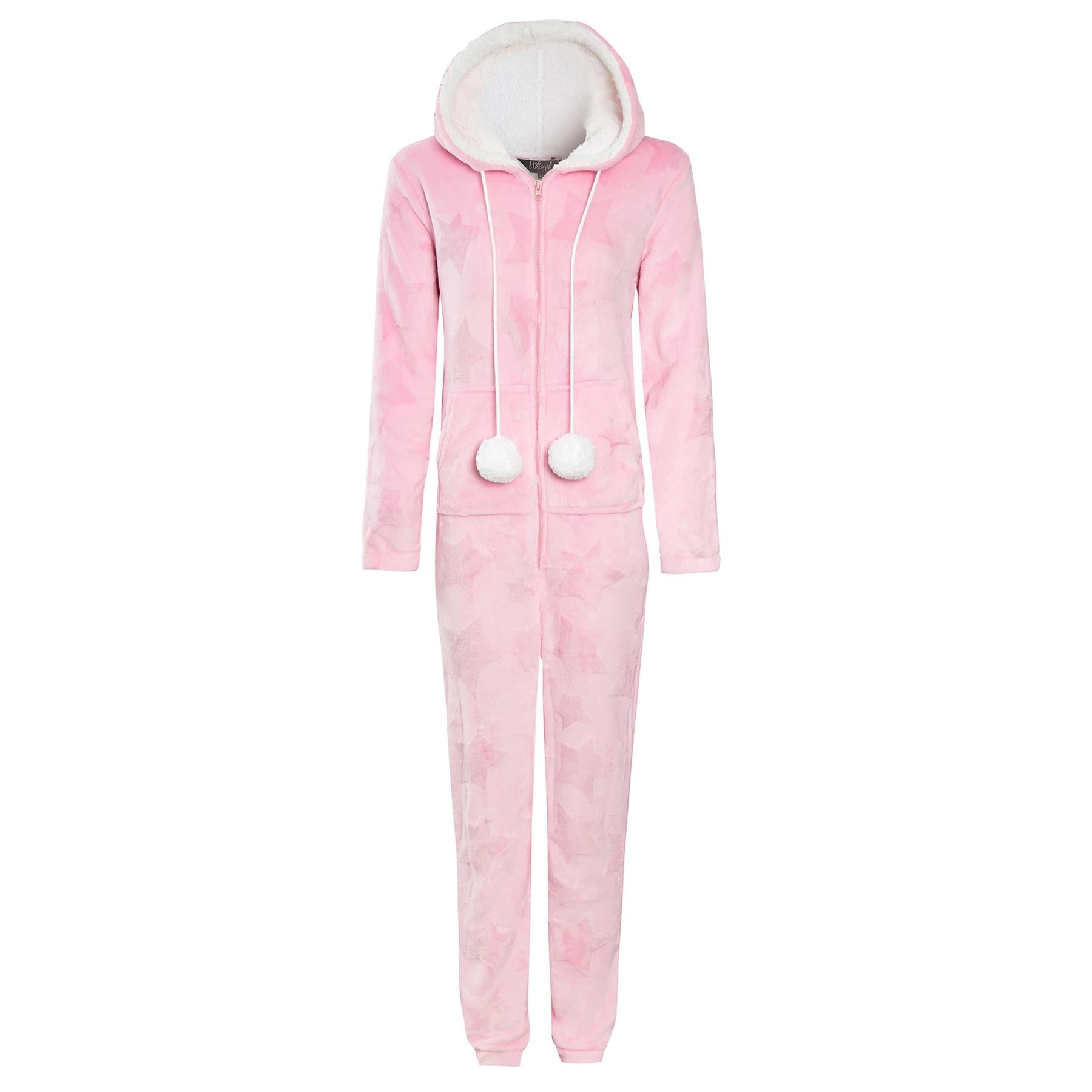 A2Z Ladies Pink & Grey Star Embossed Fleece Onesie with Hood Zip Up Lounge Suit