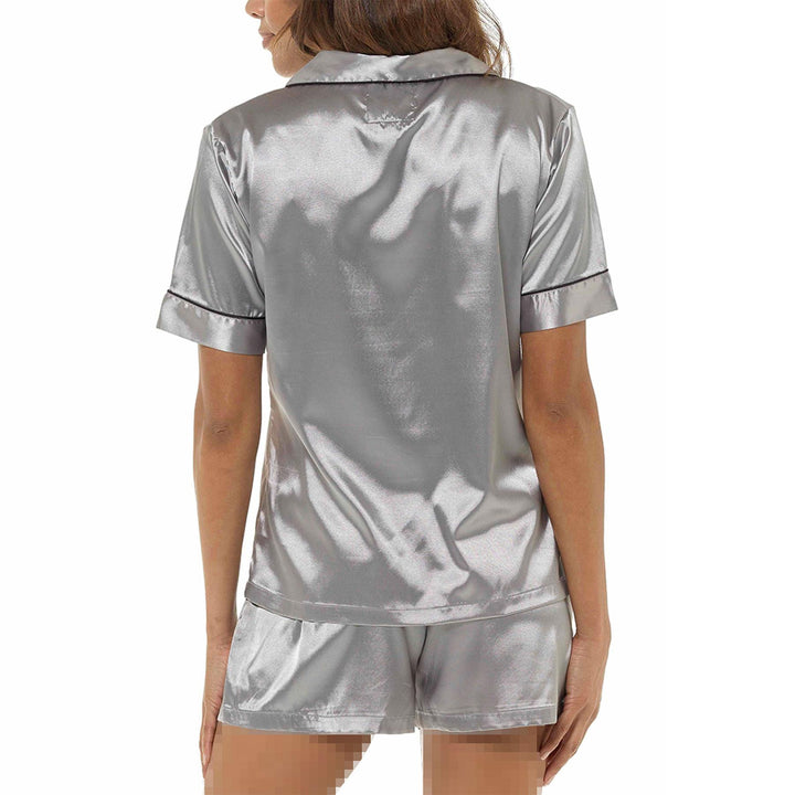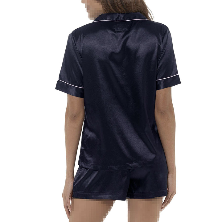 A2Z Ladies Silk Satin Pyjamas Set Button Down Top Shorts PJS Contrast Piping Elegant Sleepwear Loungewear Bride PJS Set for Women