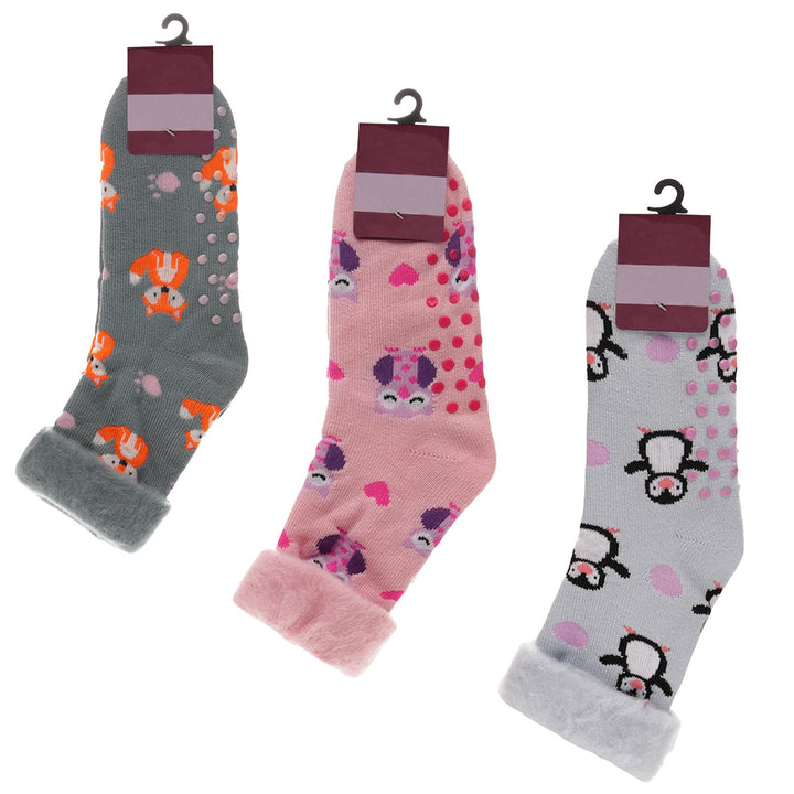 A2Z Ladies Socks 3 Pack Animal Brushed Bed Gripper Socks Winter Warm Cozy Socks