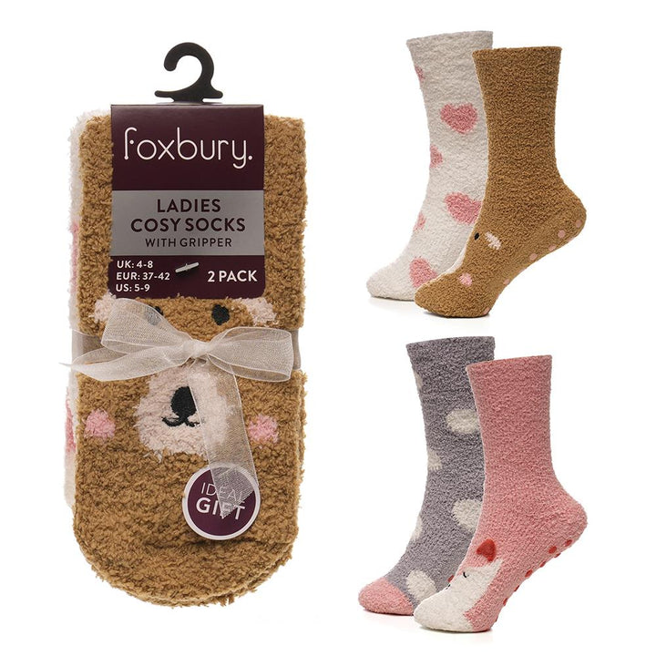 A2Z Ladies Socks 4 Pack Animal Novelty Gripper Socks Winter Warm Cozy Xmas Socks