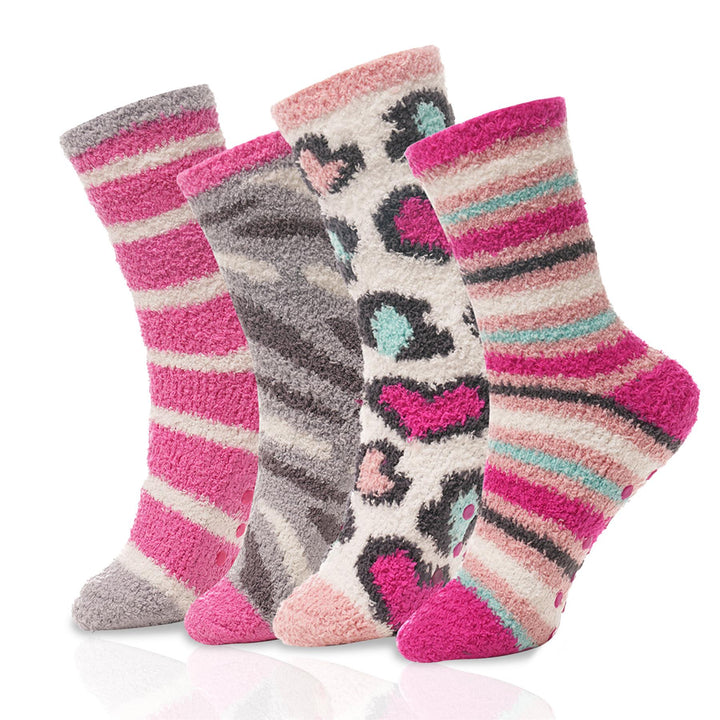 A2Z Ladies Socks 4 Pack Animal Slipper Comfortable Winter Warm Gripper Socks