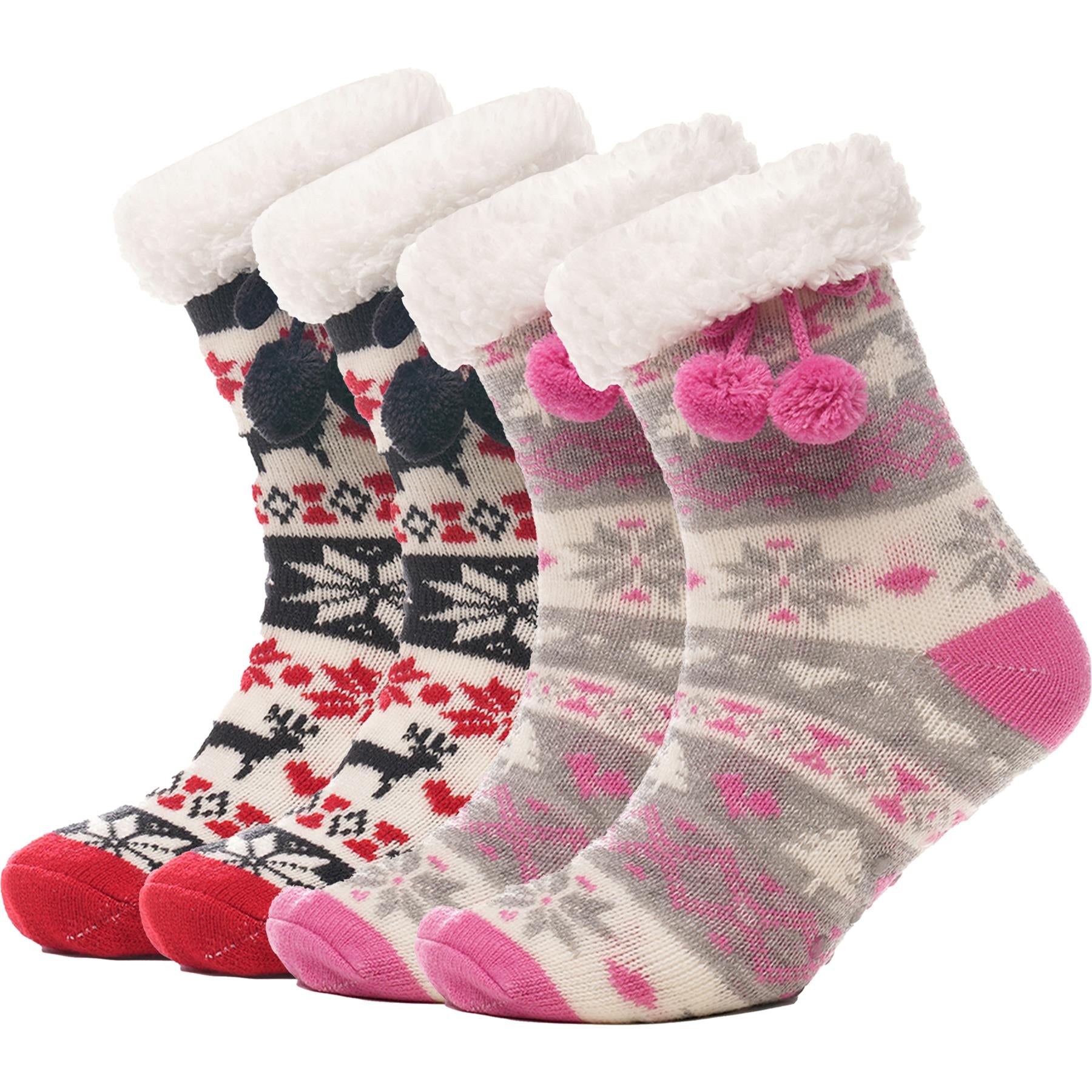 A2Z Ladies Socks Christmas Lounge Sherpa Fleece Lining Pompom Gripper Women Sock