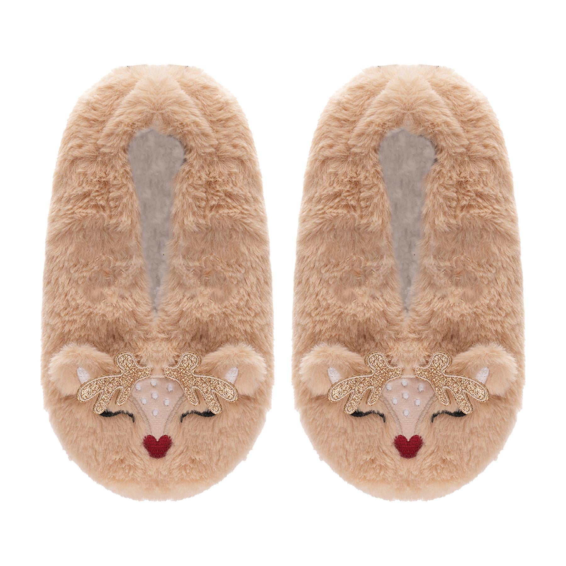 Introducing our ladies' reindeer Slipper Socks, where timeless style meets unmatched comfort. These essential wardrobe staples are designed to effortlessly enhance your outdoor look, providing a sleek and polished appearance. Perfect for any occasion, these socks offer both warmth and sophistication, making them a must-have for your collection. -