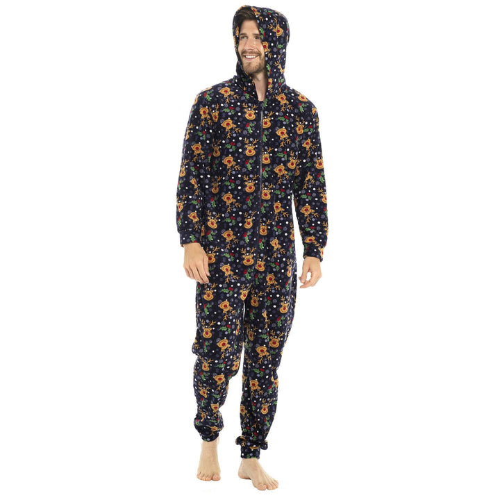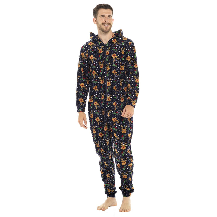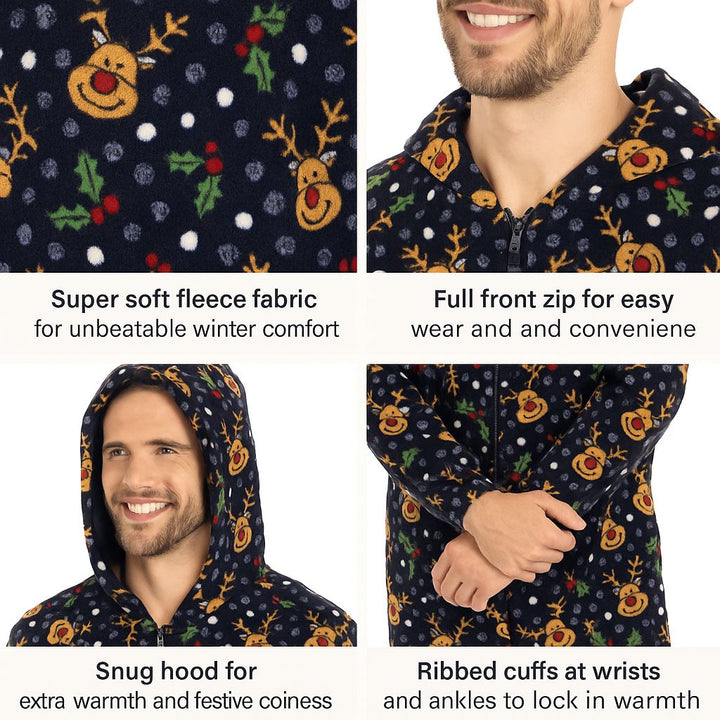 A2Z Men Womens Xmas Micro Fleece Hooded Soft Warm All in One Festive Pyjamas