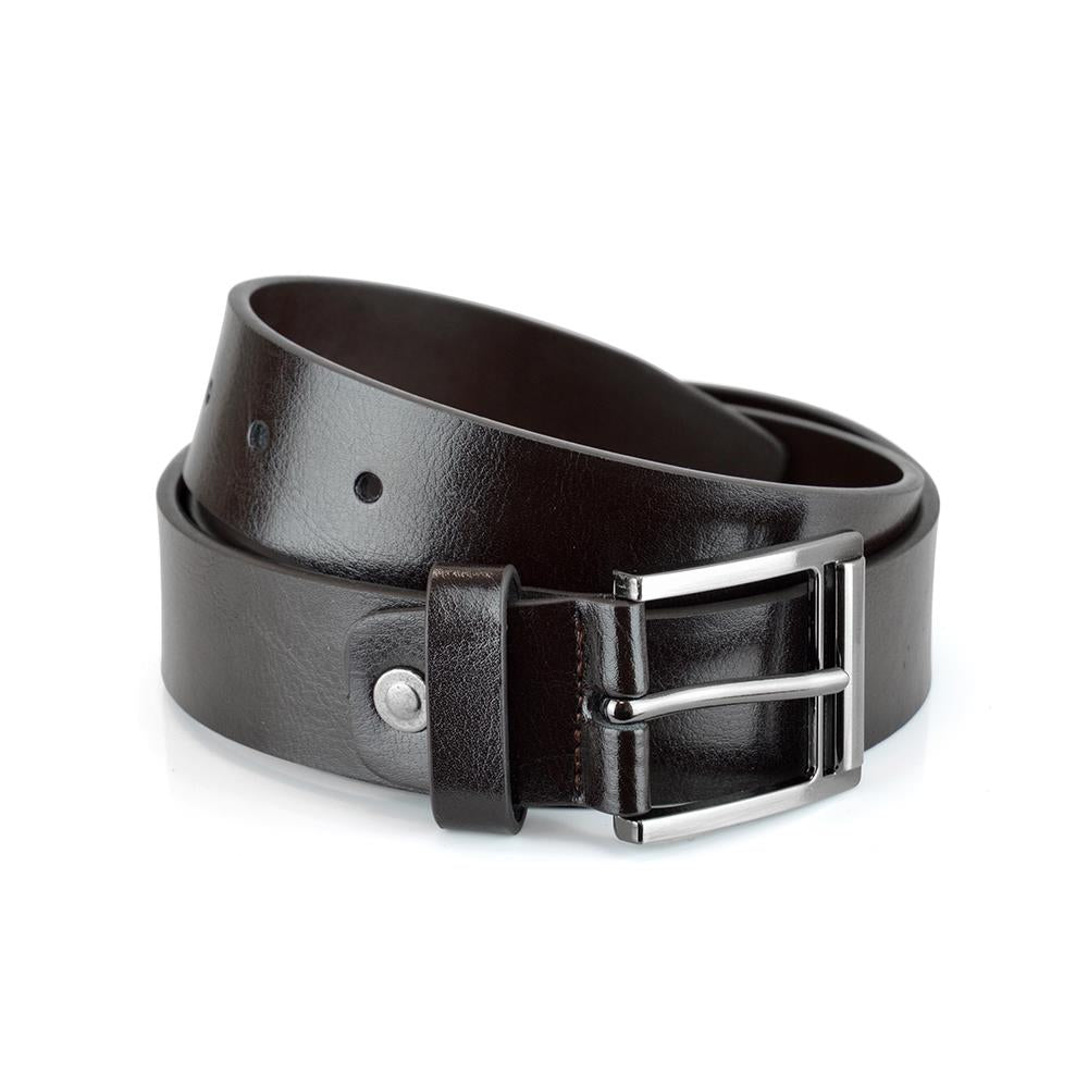 This mens 100% Pure Leather belt showcases a finely crafted strap with precise stitching, a single keeper loop, and a curved single-prong buckle designed to contour to the body for optimal comfort. Its versatile design makes it the perfect accessory for pairing with jeans, casual outfits, work pants, and business slacks, ensuring a polished look in any setting. -