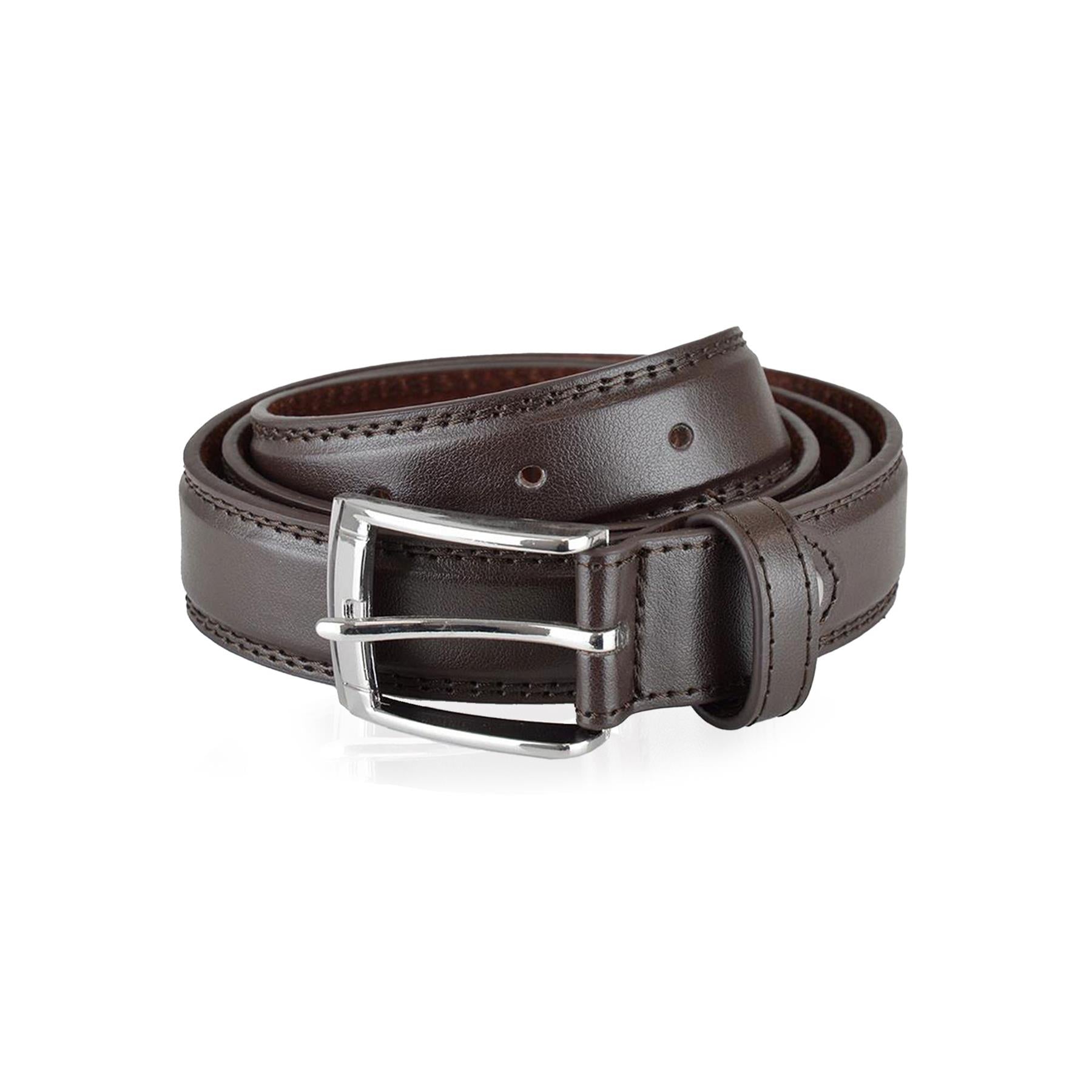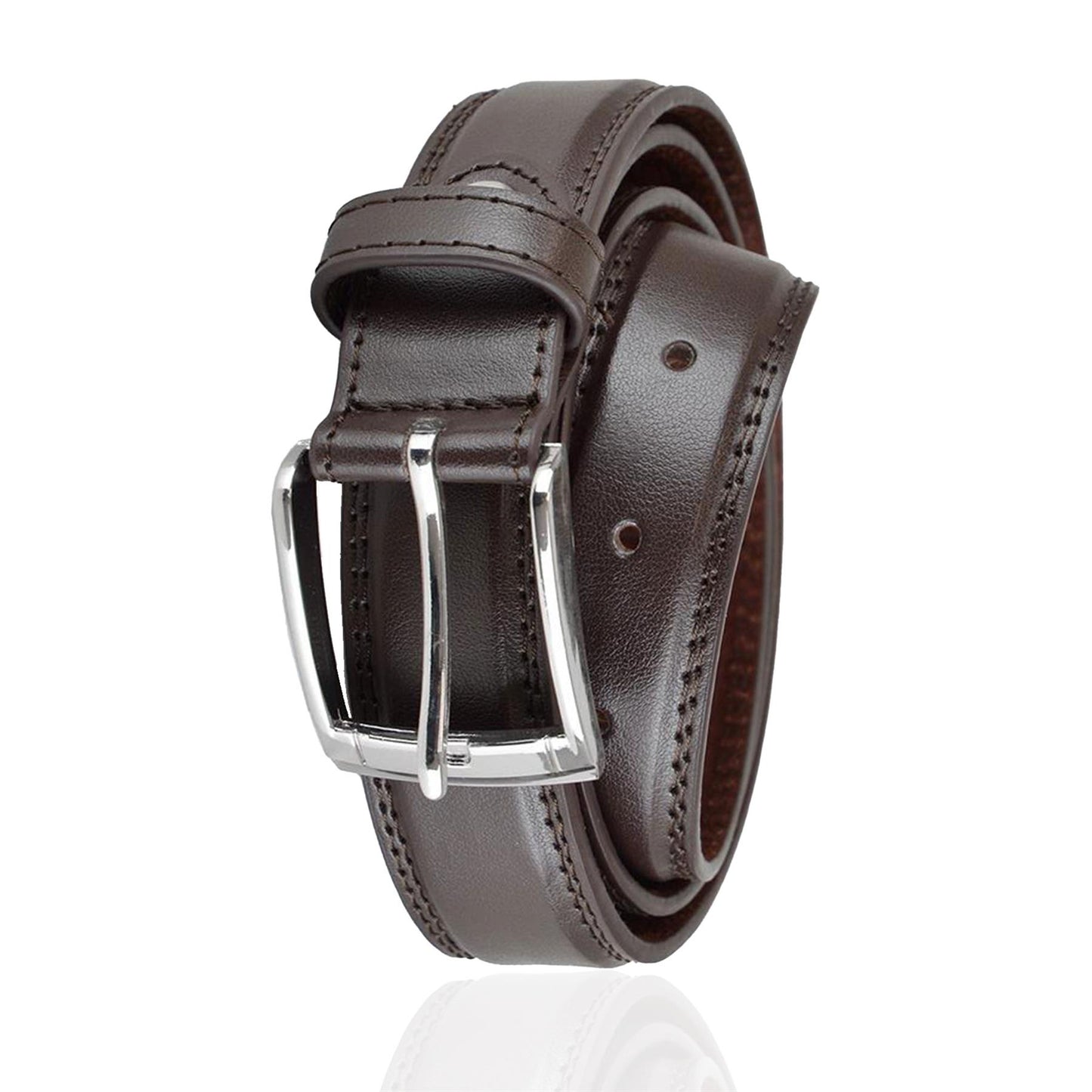This men's leather belt features a durable leather strap with precise stitching, a single keeper loop, and a curved single-prong buckle that fits the body's contours for maximum comfort. This versatile accessory is ideal for pairing with jeans, casual outfits, work pants and business slacks. -