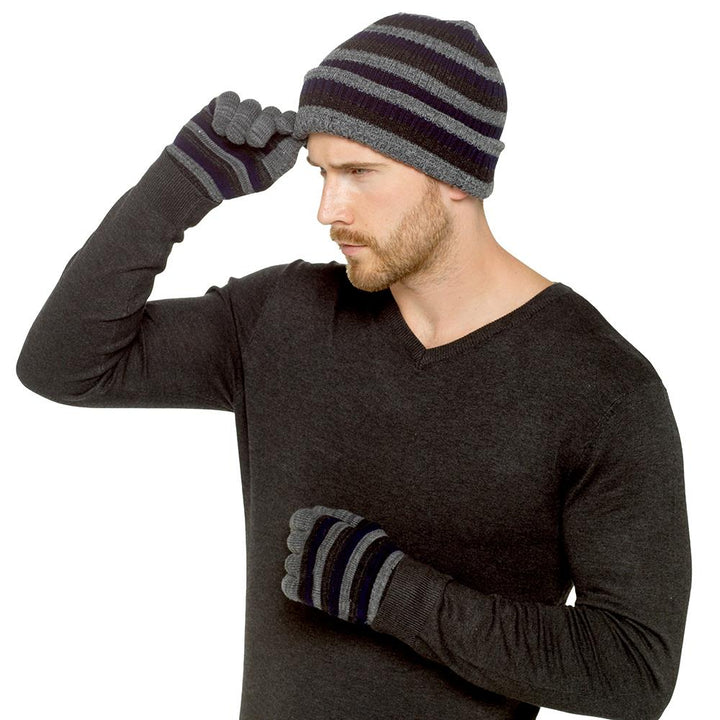 A2Z Mens Hat Gloves Set Cable Knitted Beanie Caps Winter Warm Stretchy Cozy Hats