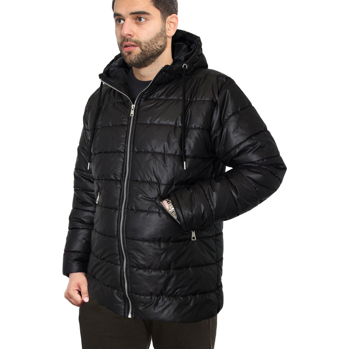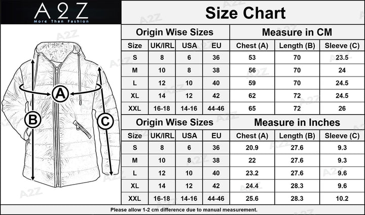 A2Z Mens Ladies Hooded Silver Zipped Puffer Black Jacket Padded Long Sleeves Coat Fashion Jacket S-XXL